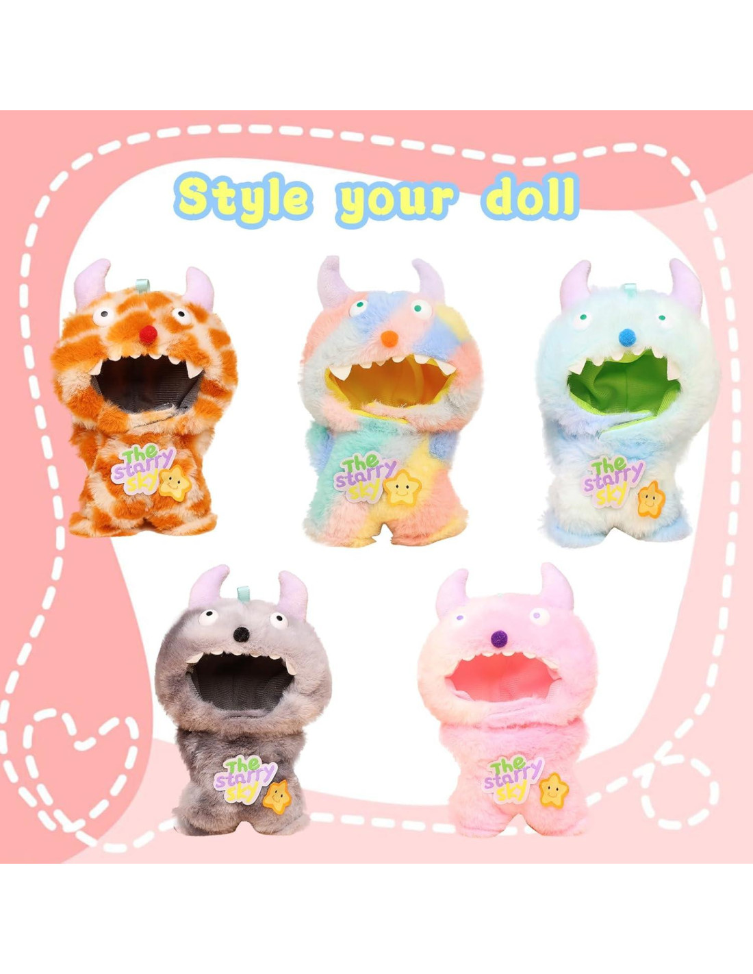 - Diseño único: Estas ropas Labubu están inspiradas en formas de monstruos lindas. Hechas de material esponjoso con colores vivos y detalles adorables, pueden transformar instantáneamente las muñecas Labubu y atraer la atención.