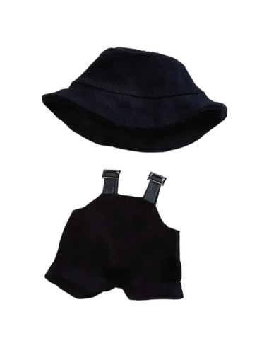 Especificaciones: Material: algodón Color: negro, blanco, rosa, azul, caqui, amarillo, rojo, púrpura Incluye el producto: 1 x Conjunto de Sombrero y Overoles para Muñecas Servicio postventa: - Nos comprometemos a brindarle un servicio postventa perfecto. - Si encuentra algún problema de calidad después de recibir el producto, resolveremos el problema rápidamente para garantizar su compra