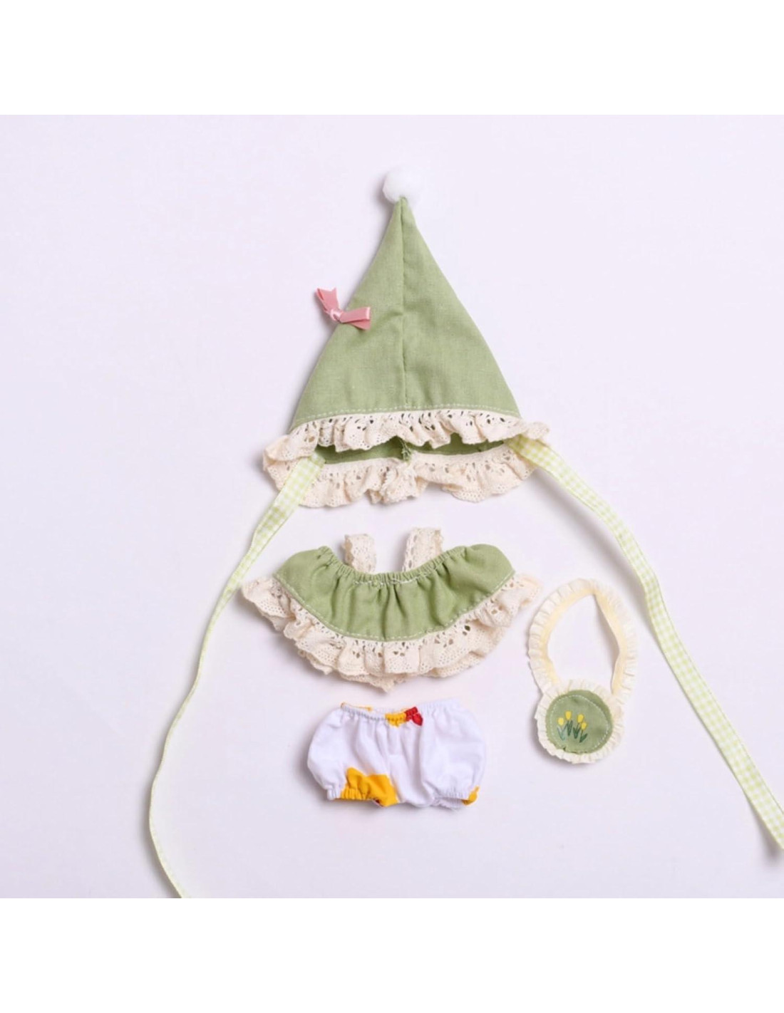 Transforma tu muñeca Bubu en una encantadora hada del bosque con este mágico conjunto de disfraz de hada del bosque, diseñado para aportar ligereza y ensueño a cada sesión de juego. Perfectamente adaptado para muñecas Bubu de 1 y 2 generación, este atuendo completo incluye un sombrero encantador, una blusa delicada, pantalones cortos adorables y una bolsa linda, todo elaborado para crear un auténtico aspecto de hada del bosque. El sombrero presenta una suave tela en tonos pastel con un lindo pompón en la punta y un dulce lazo, añadiendo un toque de magia de hada. La blusa es de diseño sin mangas con un intrincado borde de encaje alrededor de los bordes, creando una apariencia suave y etérea. Los pantalones cortos están adornados con un divertido diseño de flores, complementando el tema general de hada. Además, el conjunto incluye una bolsa de tela decorada con bordados florales, perfecta para llevar pequeños tesoros en aventuras mágicas. Este conjunto de disfraz es ideal para juegos imaginativos, sesiones de fotos temáticas o simplemente para vestir a tu muñeca Bubu en ocasiones especiales. Deja que tu muñeca se convierta en una verdadera hada del bosque con este adorable y detallado atuendo.