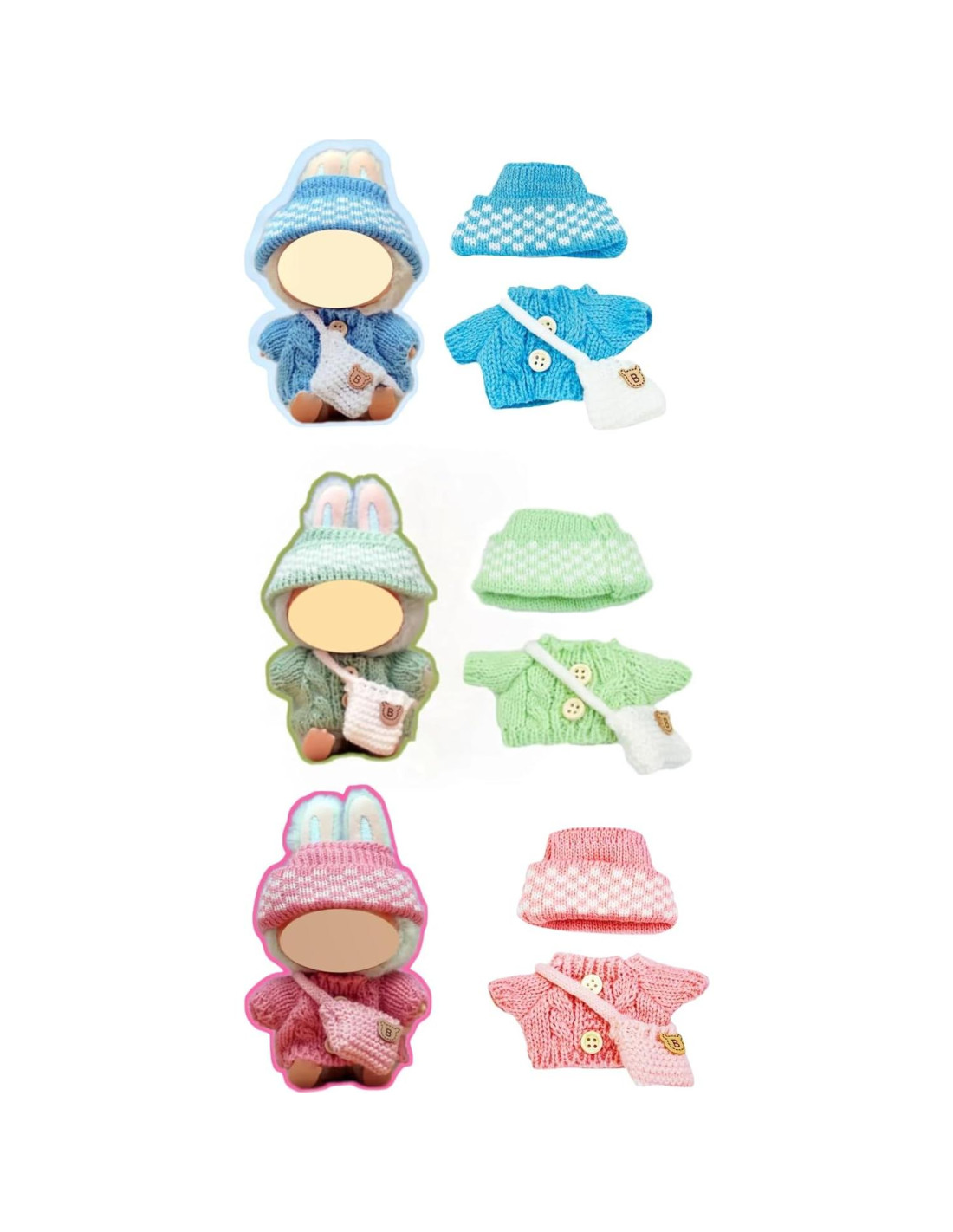 Este es un disfraz lindo diseñado específicamente para muñecas de 5.91-6.7 pulgadas (15-17 cm) (Muñeca No Incluida). Incluye pantalones con tirantes y accesorios de ropa de bebé, sombrero tejido a mano, suéteres, bolsa. Es una opción ideal para combinaciones diarias, decoración de escenas y exhibición de colecciones, creando estilos de moda para muñecas de caja sorpresa.