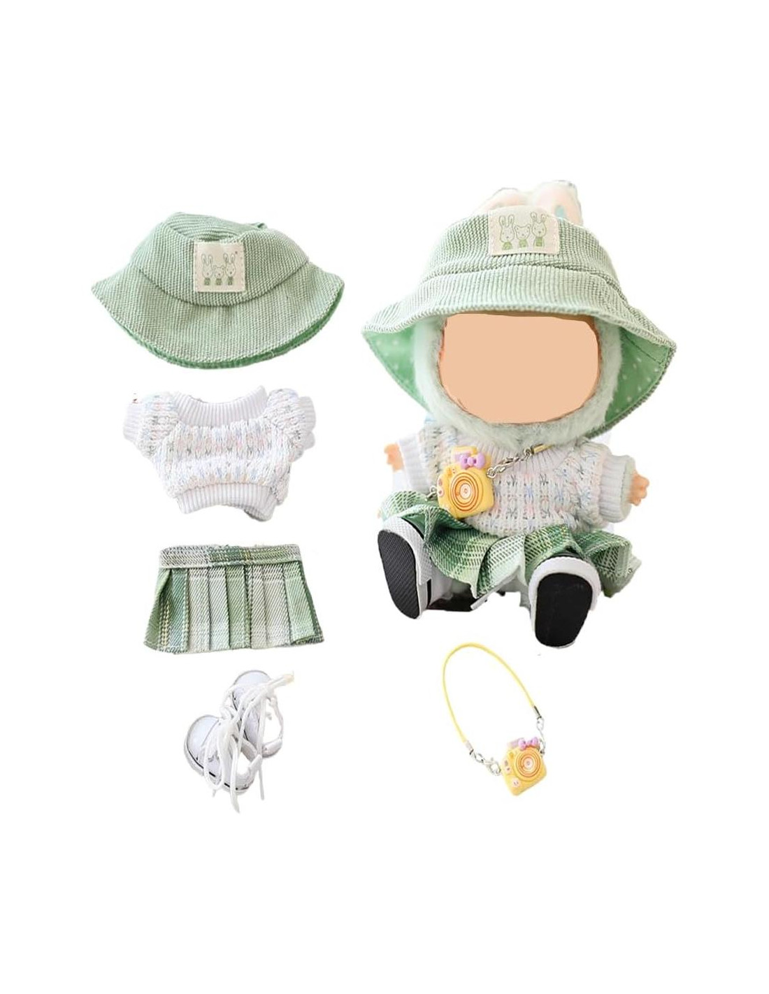 Amplia aplicabilidad Ajuste universal - Perfecto para muñecas de 15 cm y 17 cm Uso multipropósito - Ideal como pieza de decoración del hogar, regalo de fiesta o accesorio de escritorio/coche para alegrar cualquier espacio! Diseño superior Moderno y a la moda - Estilo kawaii único que hace que tu muñeca destaque. Estilo versátil - Ideal para juegos diarios, sesiones de fotos o exhibiciones de coleccionables. Elección de regalo perfecta - Sorprende a tus seres queridos en Navidad, Día de San Valentín, Día de la Madre o cumpleaños! Encanto que mejora el estado de ánimo - Accesorios divertidos añaden alegría a tu rutina diaria! Material excelente Tela suave y duradera - Material de alta calidad, resistente a la decoloración que es seguro y suave para las muñecas. Uso cómodo - Asegura un ajuste ceñido pero elegante sin dañar figuras delicadas. Accesorios únicos y prácticos El conjunto completo incluye 1 x Sombrero de pescador adorable 1 x Suéter acogedor 1 x Falda elegante 1 x Modelo de cámara mini (decoración no funcional) 2 x Zapatos lindos Nota del paquete Muñeca no incluida - Solo se proporciona el conjunto de ropa + accesorios. ¿Por qué elegir este atuendo? Opciones de estilo infinitas - Mezcla y combina con otras ropas de muñeca. Fotogénico y digno de Instagram - Eleva tu fotografía de muñecas. Gran valor - Un conjunto completo para regalar o colección personal. Perfecto para amantes de las muñecas, entusiastas del kawaii y decoradores creativos!