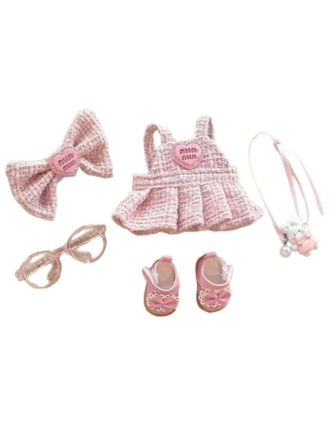 - Accesorios Premium para Muñecas de 17cm Incluidos - Este elegante conjunto de ropa y vestido para muñecas incluye 1x vestido de tweed rosa bellamente confeccionado, 1x diadema con lazo, 1x bolso de hombro de conejo, 1x par de zapatos de princesa rosa, y 1x gafas, todos elaborados con materiales de alta calidad para un aspecto lujoso e inspirado en diseñadores.