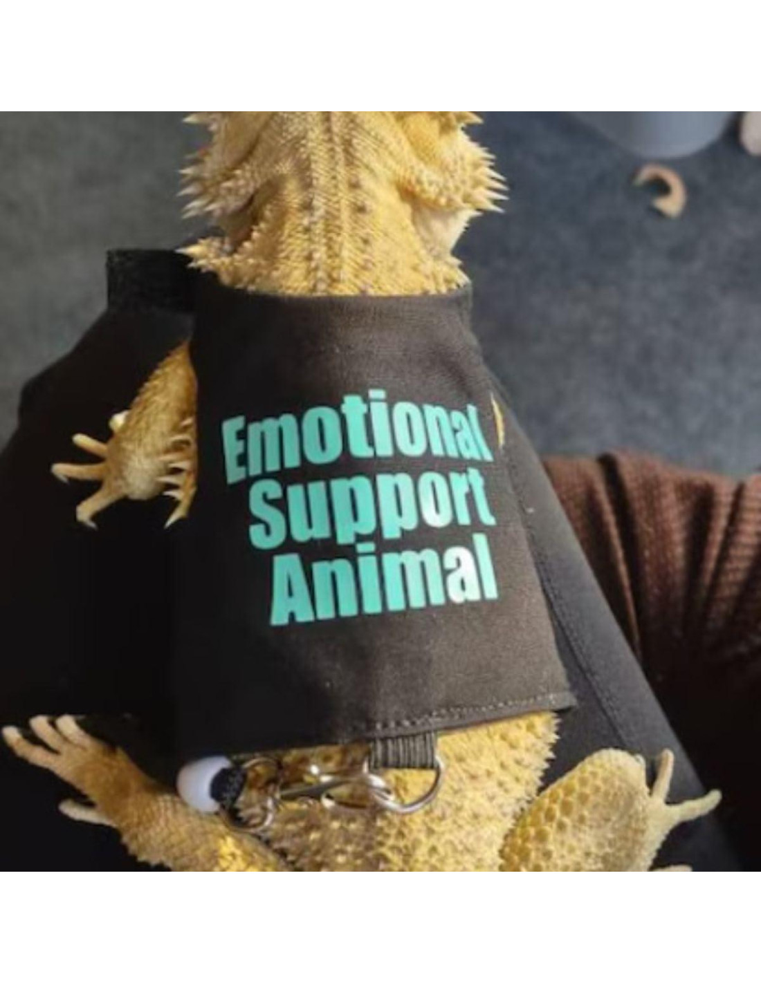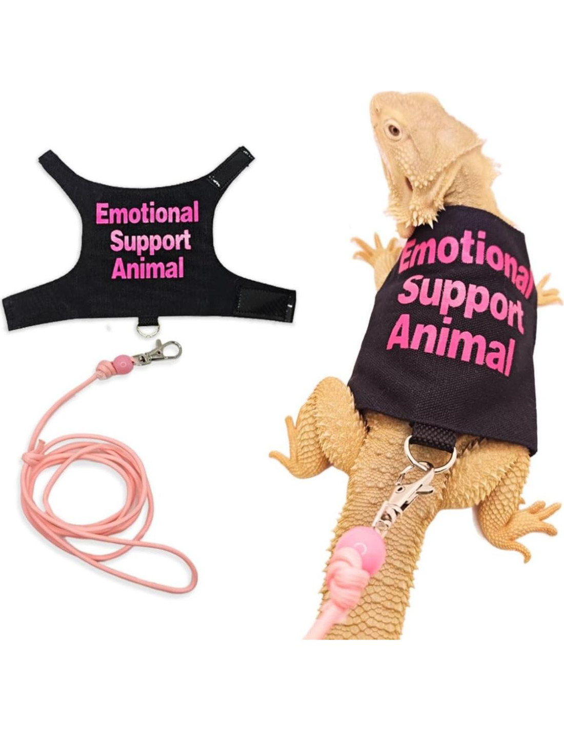 - Diseño: "Animal de Apoyo Emocional" está impreso en la parte posterior de este arnés. El diseño único está lleno de amor, haciendo que tu lagarto luzca diferente.