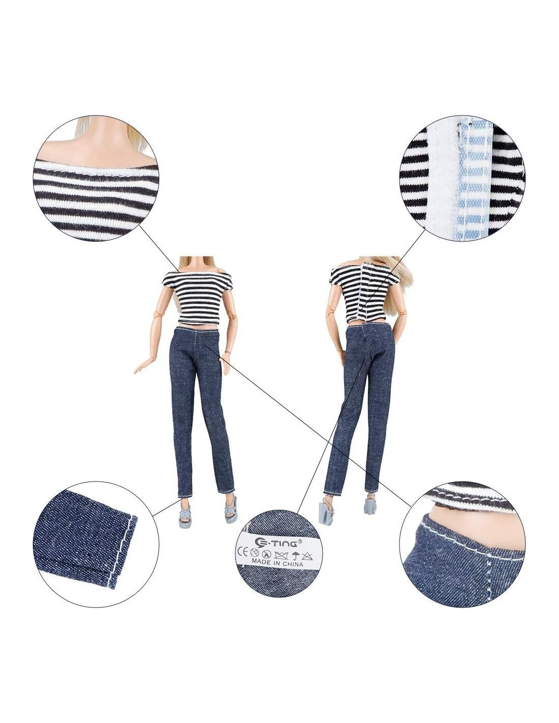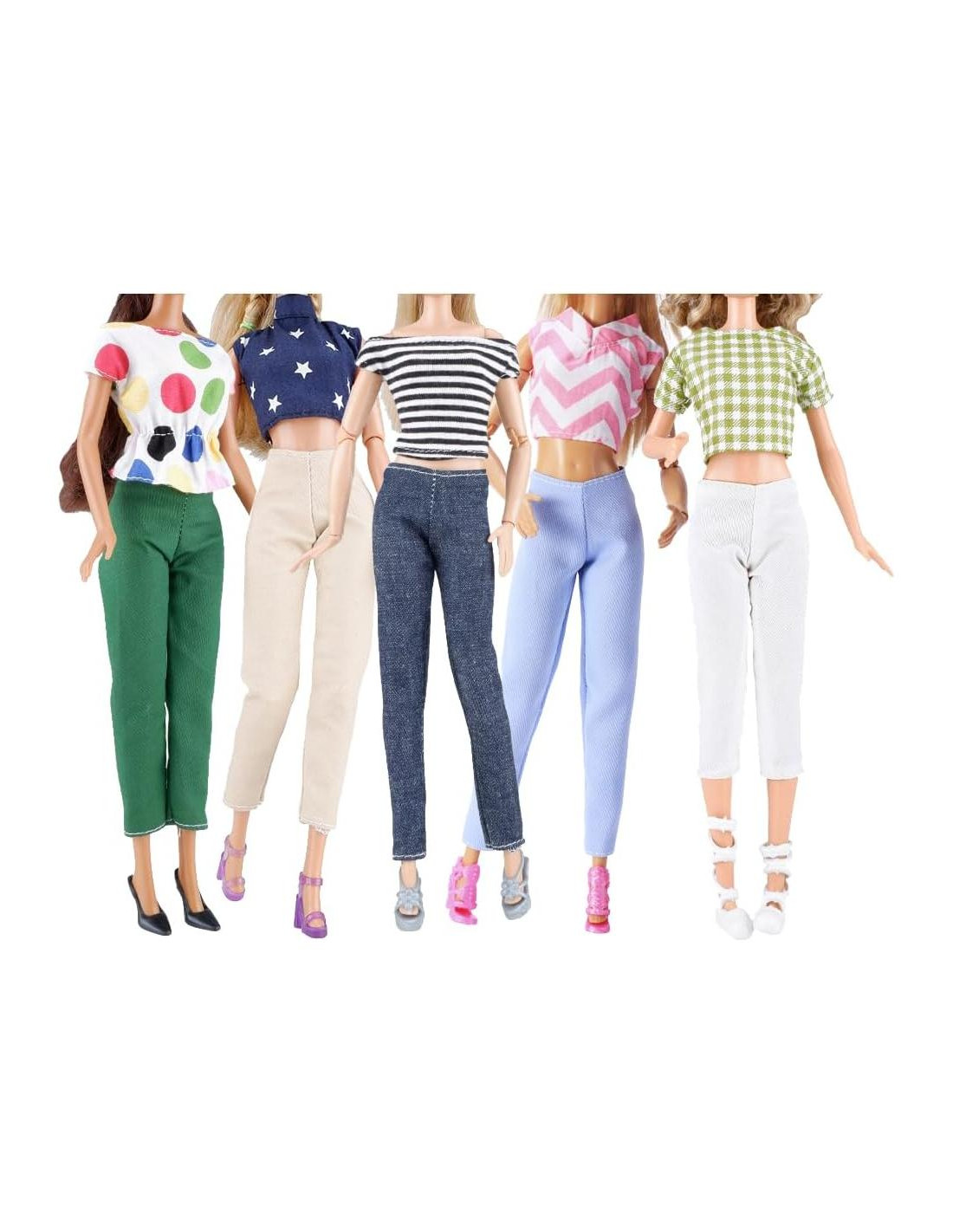 - Conjuntos Preciosos-¡Conjuntos divertidos para jugar! Reúne todos para la máxima emoción de mezclar y combinar. Satisface la diversión de vestir de tus hijos con combinaciones infinitas. Cada compra incluye 5 conjuntos de diferentes estilos de moda y hermosos tops y pantalones con 5 pares de zapatos para muñeca de 11.5 pulgadas. La muñeca no está incluida