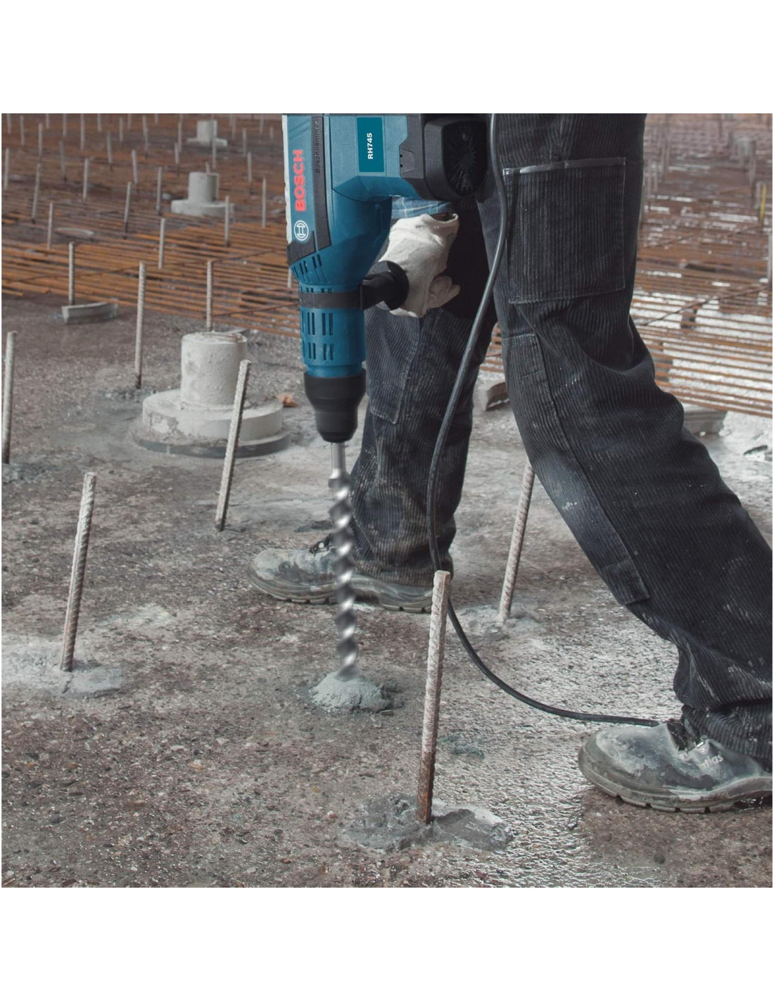 El martillo rotativo Bosch RH745 SDS-max 1-3/4 Pulgadas presenta un rendimiento de perforación y cincelado de clase líder con 8.2 Pies-Libras (11,1 Joules) de energía de impacto (EPTA). El martillo cuenta con dos modos de operación: martillo rotativo o solo martillo y un dial de velocidad variable para aplicaciones de perforación y cincelado controladas. La herramienta también cuenta con la función Vario-Lock. Esto permite que el cincel se rote en 12 posiciones diferentes para optimizar el ángulo de trabajo cuando se utiliza en modo solo martillo.