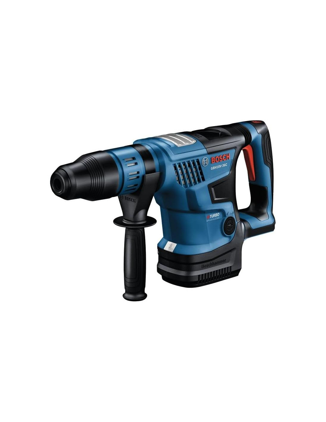 Este martillo rotativo SDS-max 1-9/16 In. de 18V es lo suficientemente potente como para proporcionar un rendimiento tipo cable para abordar trabajos de perforación o cincelado en concreto de alta resistencia. El Martillo Rotativo Bosch GBH18V-36C entrega 5.2 Ft.-Lbs. (6,96 Joules) de energía de impacto (EPTA). Eso es sin precedentes para un martillo rotativo SDS-max de 1-9/16 In. impulsado por una sola batería de 18V. Pesa 11.3 Lbs. (5,13 kg) (solo herramienta, sin incluir la batería). Este martillo es parte del Sistema PROFACTOR, que combina la Tecnología BITURBO Brushless con una Batería de Alta Potencia CORE18V. La Tecnología BITURBO Brushless es un motor de alto rendimiento y un sistema de transmisión diseñado para entregar potencia comparable a herramientas de cable de alta demanda. El martillo tiene Control de Retroceso para reducir el riesgo de reacciones repentinas de la herramienta en condiciones de bloqueo, e incluye un mango principal antivibración. El GBH18V-36C tiene modos de martillo rotativo y solo martillo, un ajuste de reversa y Vario-Lock para rotar y bloquear el cincel. También tiene Arranque Suave y rpm y bpm controlados, lo que facilita el control de aplicaciones de perforación y cincelado. El martillo cuenta con una interfaz de usuario en la herramienta para el rendimiento, retroalimentación y control de la herramienta. Este martillo cuenta con conectividad (módulo vendido por separado), proporcionando un enlace a la aplicación gratuita Bosch Toolbox en un dispositivo conectado para personalizar configuraciones.