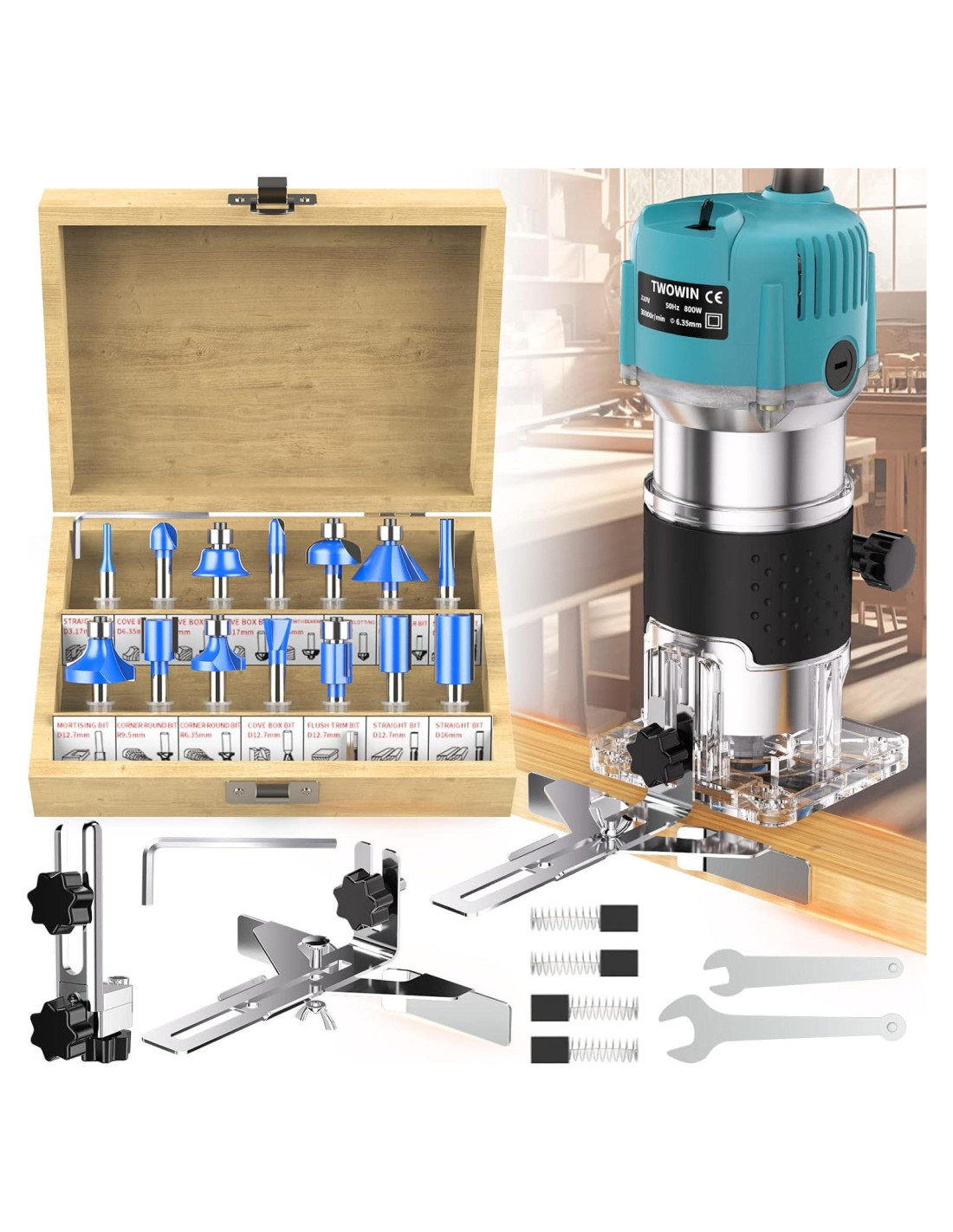 - Brocas de Carburo de Tungsteno Esta Herramienta Router Compacta viene con un estuche de madera para fácil almacenamiento y organización. Perfecta para bordes, recortes, vetas y ranuras en todos los proyectos de carpintería tanto para carpinteros profesionales como para aficionados.