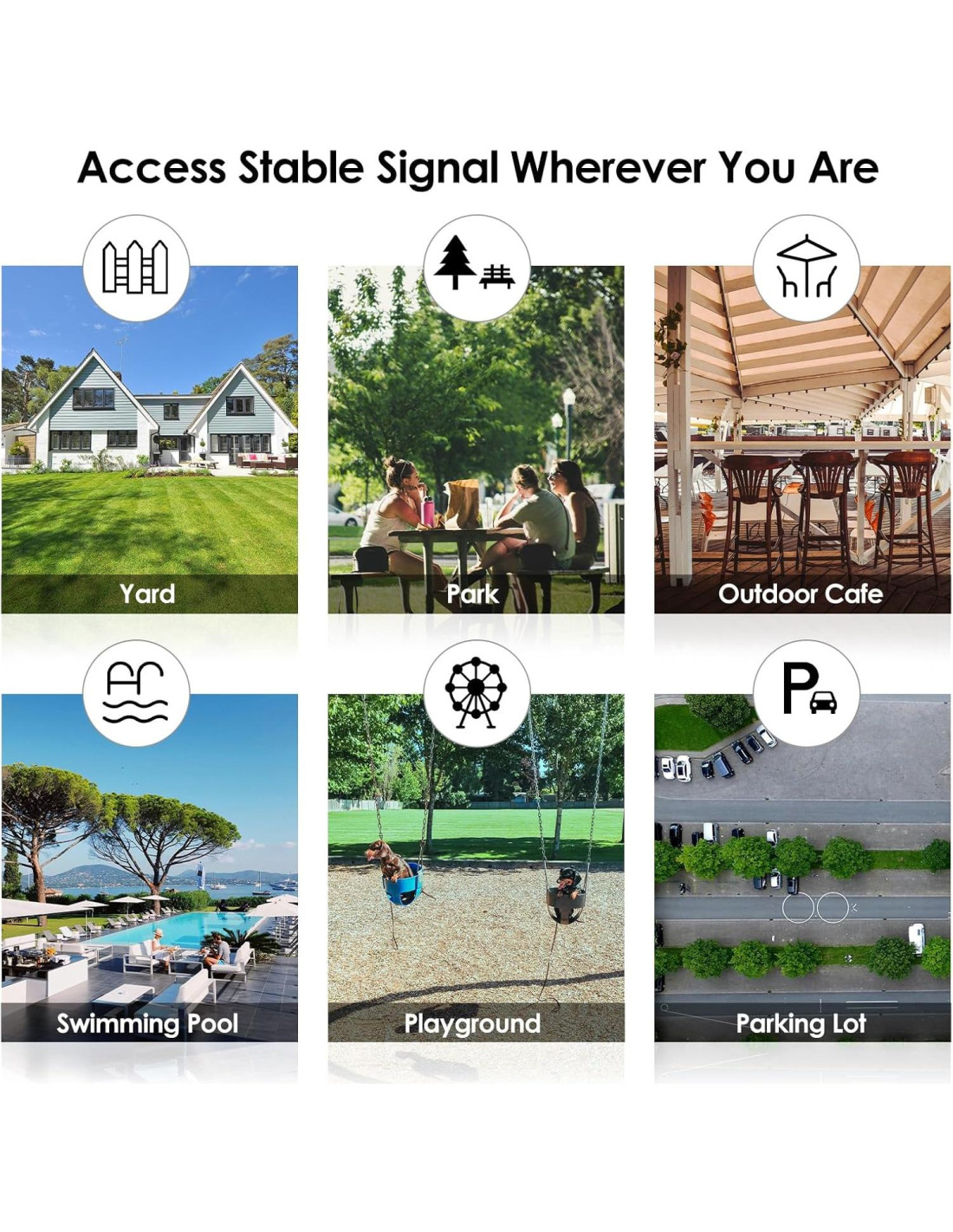 - Punto de Acceso Exterior: Proporcionando una velocidad de red ultrarrápida de 300Mbps sobre la banda de 2.4G y 867Mbps sobre la banda de 5G, el repetidor Wi-Fi exterior tiene un rango de cobertura máximo de 200 metros, soporta hasta 32 dispositivos. Configuraciones simples permiten la optimización inalámbrica para mejorar la calidad y efectividad de la transmisión del enlace (La cobertura puede variar según el entorno real)