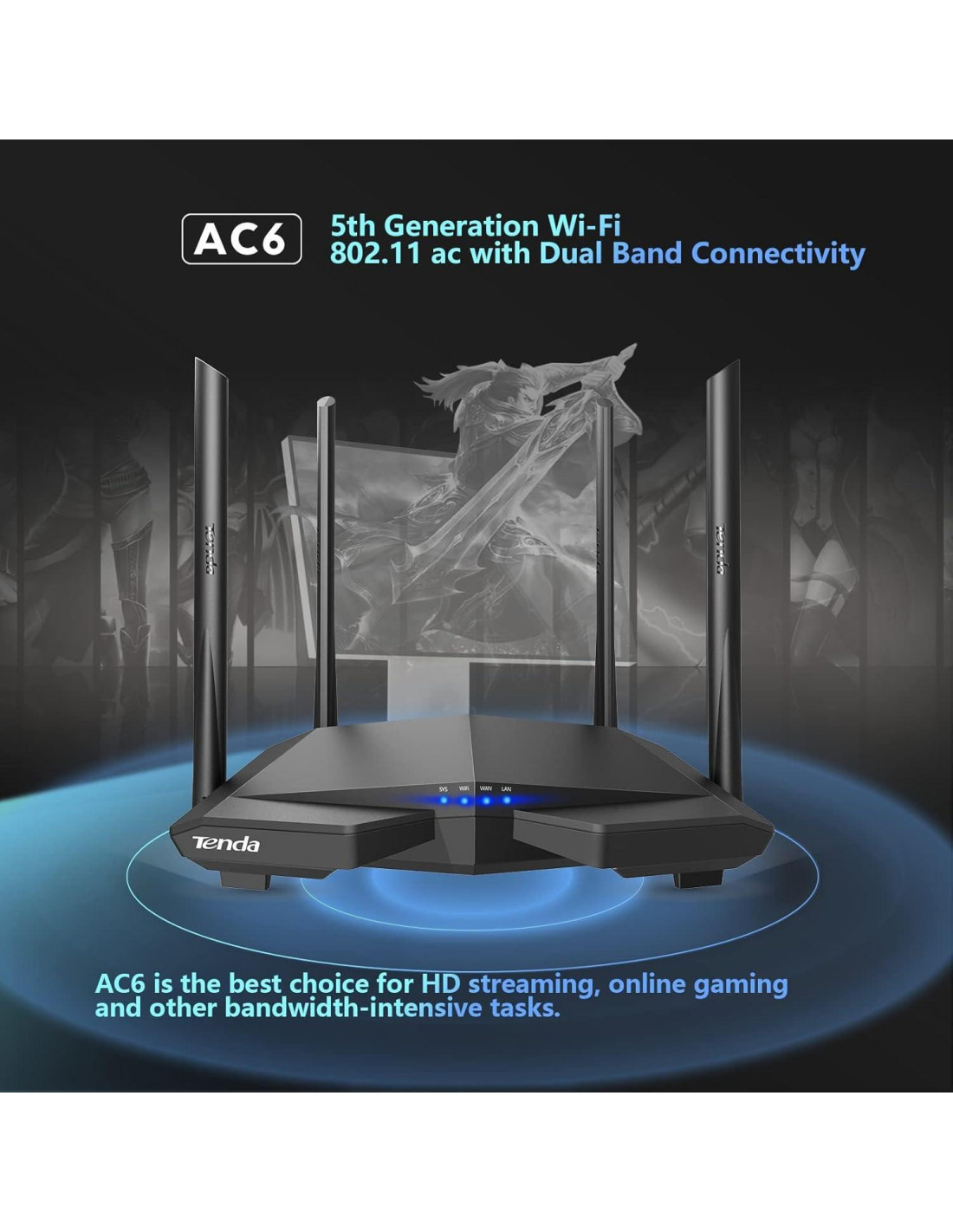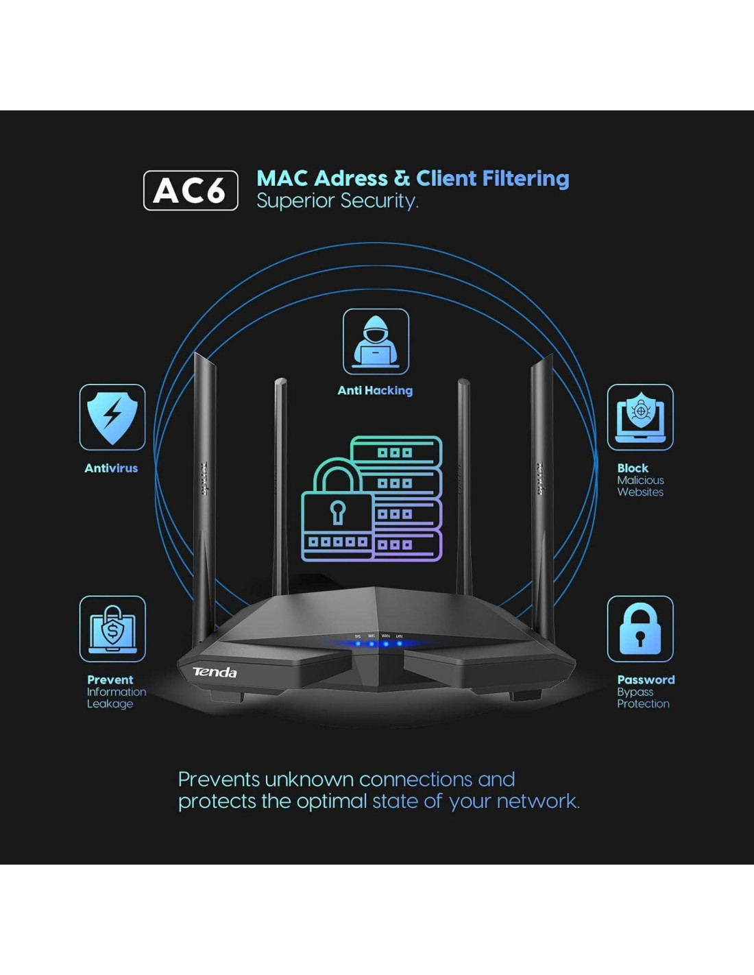 - Equipado con Cuatro Potentes Antenas de 6dbi y tecnología Beamforming, el router inalámbrico AC6 ofrece internet de alta velocidad en toda tu casa