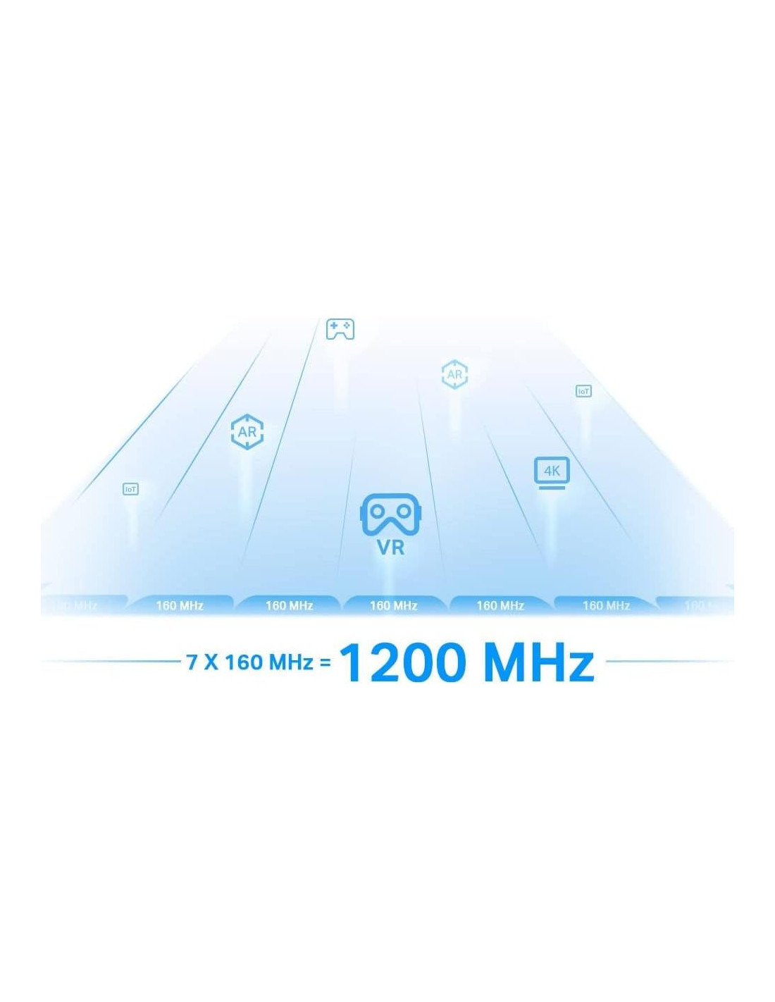 - Ancho de Banda de Canal de 160 MHz - Expande el ancho de banda para duplicar la velocidad de red de los tradicionales 80 MHz.
