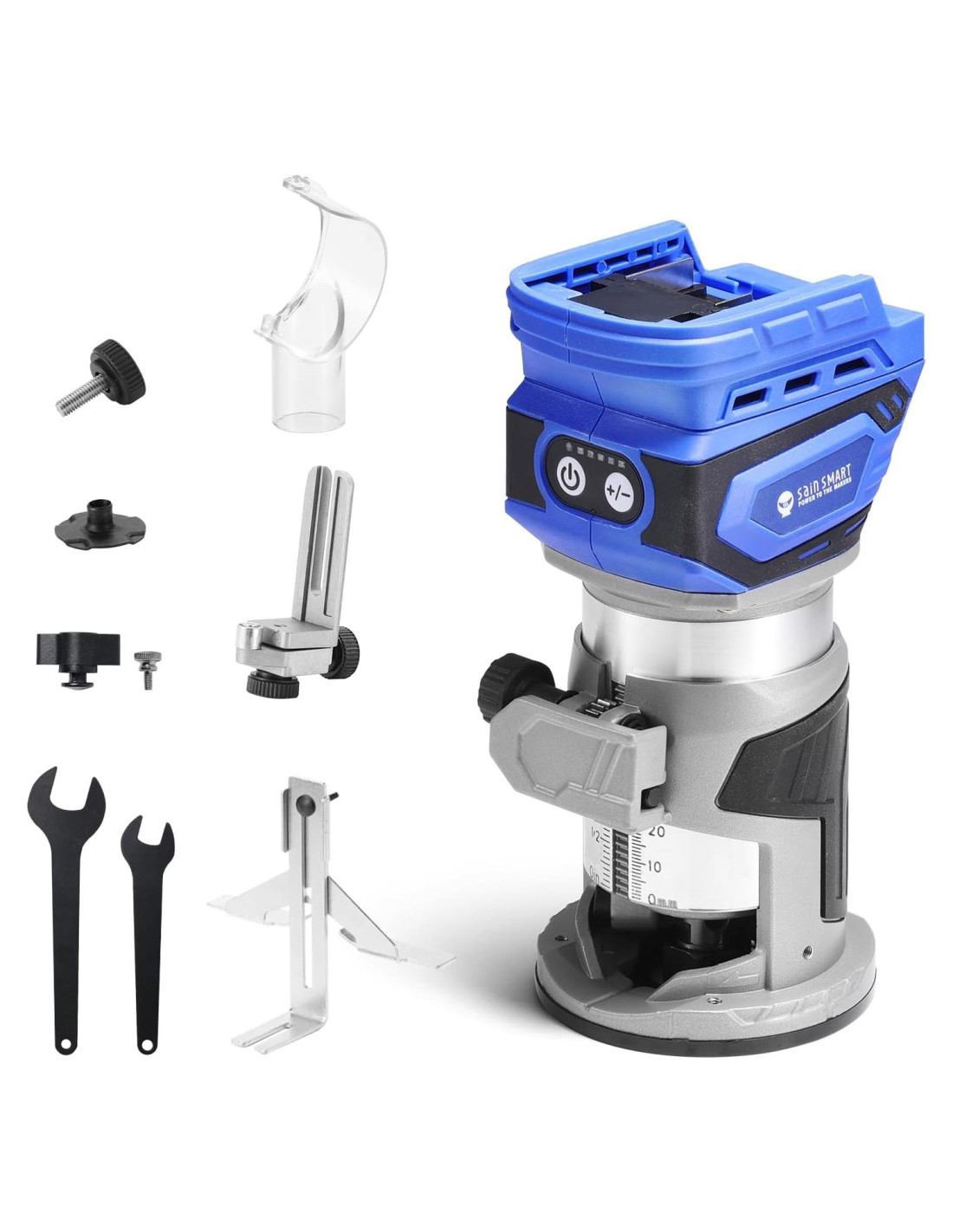 1 x Router Trimmer Sin Escobillas, 1 x Base Fija, 1 x Collet de Router de 1/4" (Compatible con Collet de Router de 5/16"), 1 x Guía Recta, 1 x Placa de Guía, 1 x Guía de Recorte, 2 x Llaves, 1 x Tornillo de Perilla, 1 x Tornillo de Pulgar, 1 x Tornillo de Abrazadera, 1 x Boquilla de Polvo, 1 x Manual. Siempre use EPP apropiado (gafas de seguridad, protección auditiva, mascarilla contra el polvo). Monte el router de manera segura antes de comenzar. Asegúrese de que la herramienta de corte esté correctamente instalada y apretada. Ajuste la profundidad de corte según la tarea, comenzando poco profundo y aumentando según sea necesario. Use ambas manos para controlar y guiar el router. Deje que la herramienta trabaje a un ritmo constante, evitando la fuerza. Mantenga el cable de alimentación alejado del área de corte. Realice el corte en sentido antihorario con el router trimmer en modo manual. Espere a que la broca del router se detenga antes de dejar la herramienta. Router Inalámbrico. Router Inalámbrico. Router Trimmer de 1.25 HP. Router Trimmer de 1 HP. SainSmart ha servido a la comunidad de creadores durante años. A medida que el movimiento de creadores continuó creciendo, también lo hizo nuestra selección de productos, seguimos proporcionando productos de calidad con gran valor y rendimiento a nuestros clientes. Con nuestro control de calidad superior y una variedad de suministros de hardware abierto, creemos que podemos brindarle una mejor experiencia de compra y guiarlo a través de su Viaje de Creador. Diez años de productos centrados en el bricolaje/creadores ha sido un gran viaje. Nos alegra ser parte de este viaje, brindando valor y rendimiento a nuestros clientes y "desatando la creatividad" ayudando a convertir sus sueños diurnos y proyectos de fin de semana en realidad.
