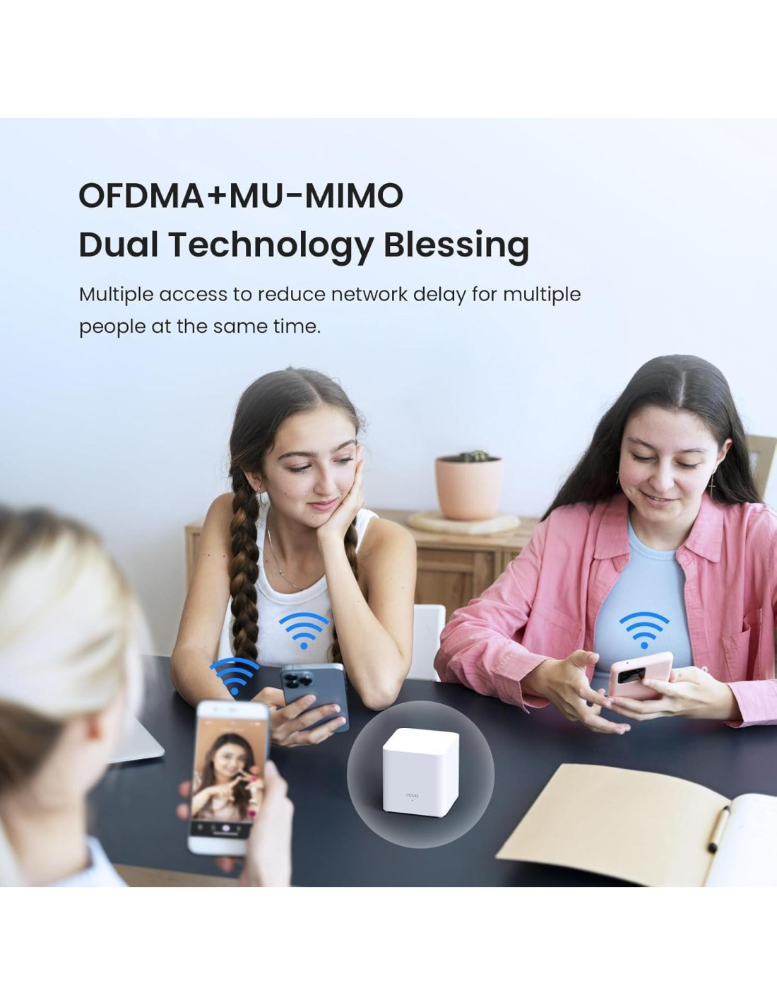 - Impulsado por la tecnología MU-MIMO y OFDMA, el sistema de Wi-Fi Mesh de doble banda AX1500 proporciona una red Wi-Fi de alta velocidad para todos tus dispositivos y ofrece una experiencia sin retrasos para más de 80 dispositivos