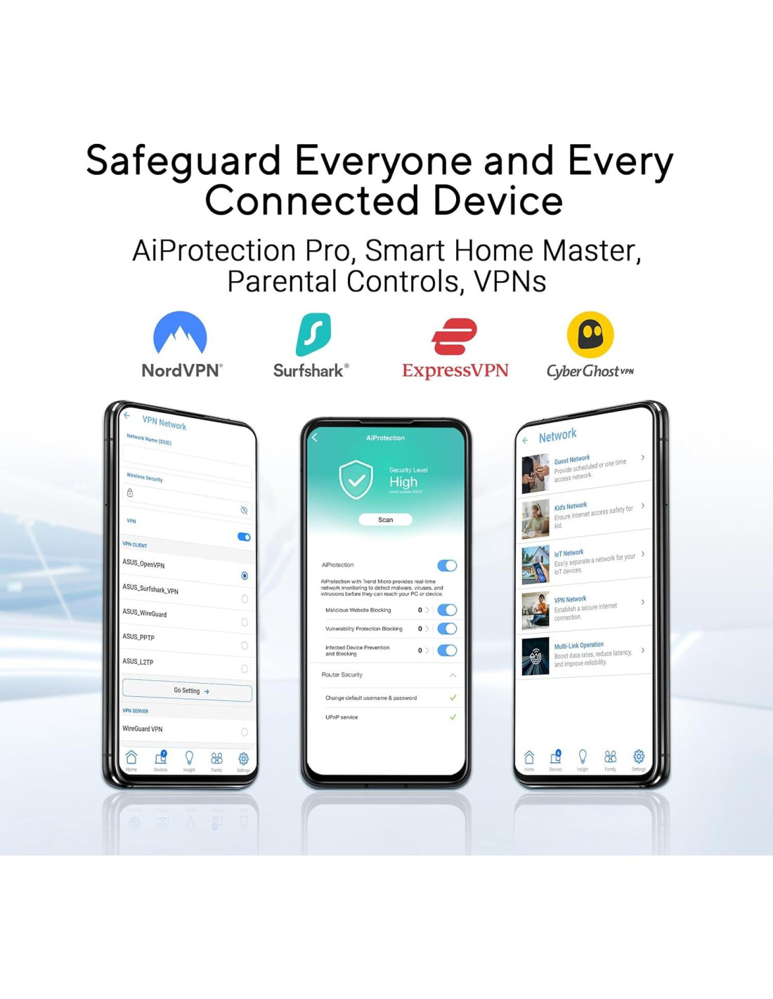 - Seguridad de red sin suscripción - AiProtection Pro de grado comercial impulsado por Trend Micro, además de un escaneo de seguridad con un solo toque y Navegación Segura