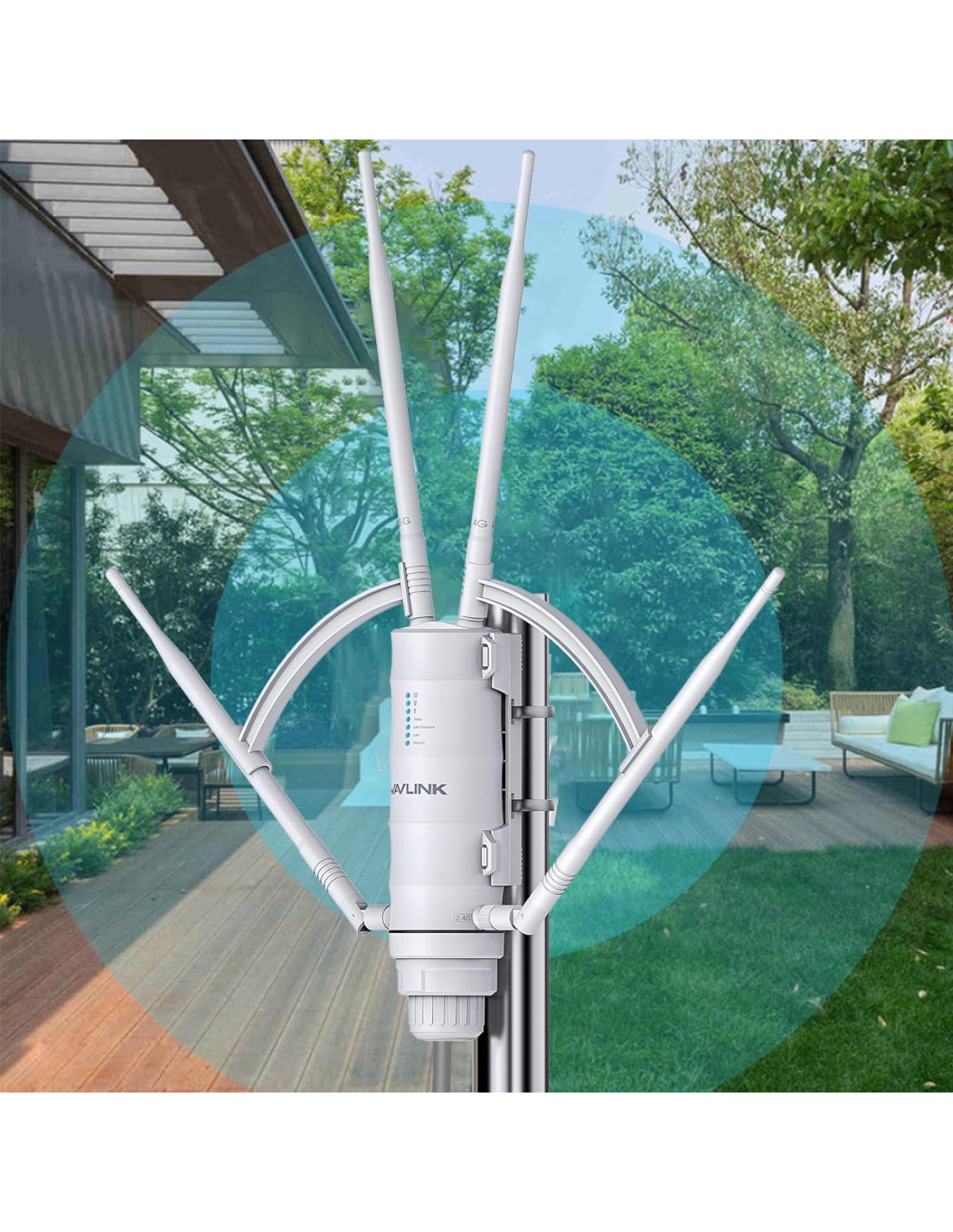 - [4 x 7dBi Antenas Omnidireccionales Desmontables] Mayor ganancia de antena que fortalece extensamente la señal Wi-Fi y expande una cobertura más amplia en el aire libre, la tecnología de estabilidad evita automáticamente conflictos de canal utilizando su función de selección de canal, cumpliendo con el requisito de red inalámbrica de largo alcance al aire libre, cubriendo zonas muertas de difícil acceso.