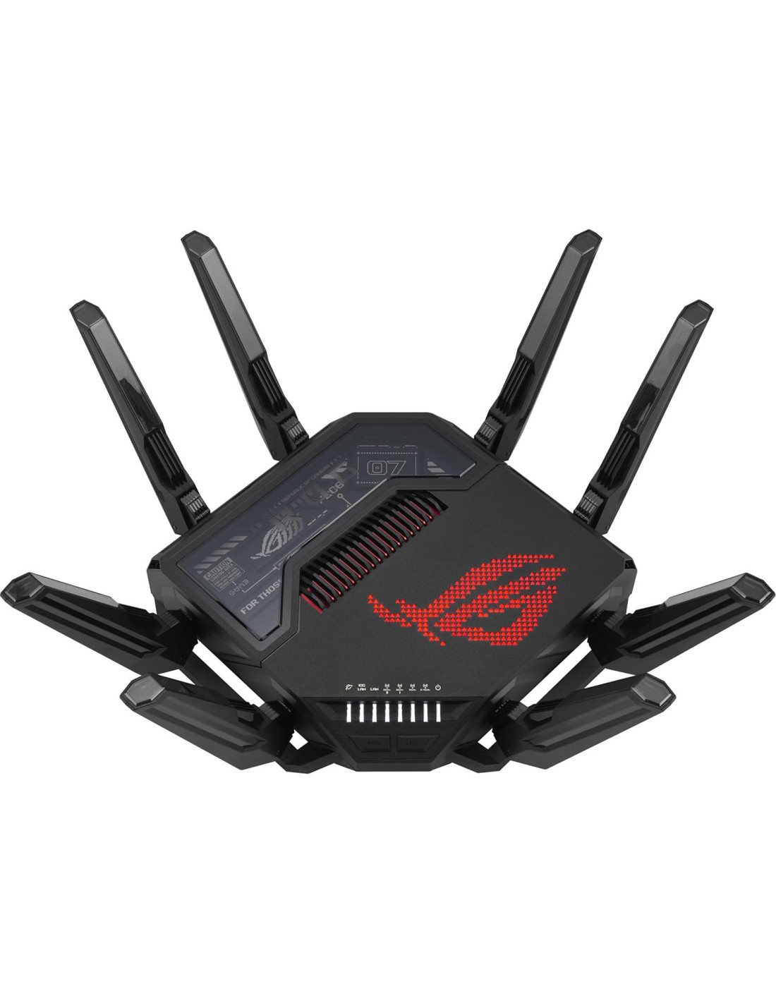 El router de juegos cuádruple banda ASUS ROG Rapture GT-BE98 Pro WiFi 7 es más que rápido. Con bandas duales de 6 GHz, puertos duales de 10Gbps y nuevas tecnologías WiFi7 como Operación de Vínculo Múltiple, alcanza velocidades de hasta 30Gbps y empuja los límites de lo que es posible en redes. Aviso: El rendimiento real de datos y la cobertura WiFi variarán según las condiciones de la red y factores ambientales, incluyendo el volumen de tráfico de la red, material y construcción del edificio, y sobrecarga de la red, resultando en un menor rendimiento real de datos y cobertura inalámbrica.