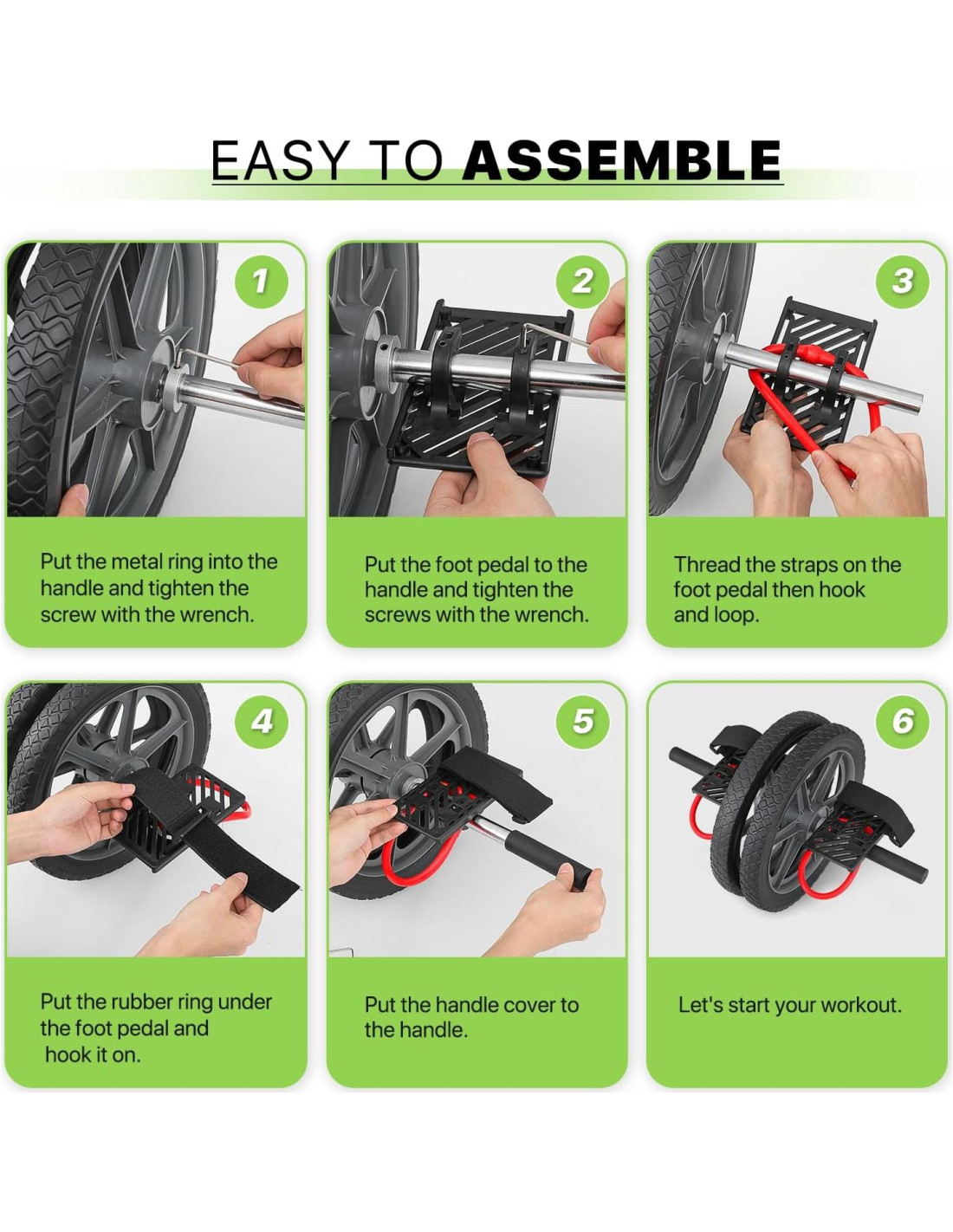 - Fácil de Montar y Transportar: Nuestra rueda de abdominales es portátil y fácil de montar. Un diseño compacto que te permite llevarla a cualquier lugar para hacer ejercicio, ya sea en casa, oficina, gimnasio o al aire libre.