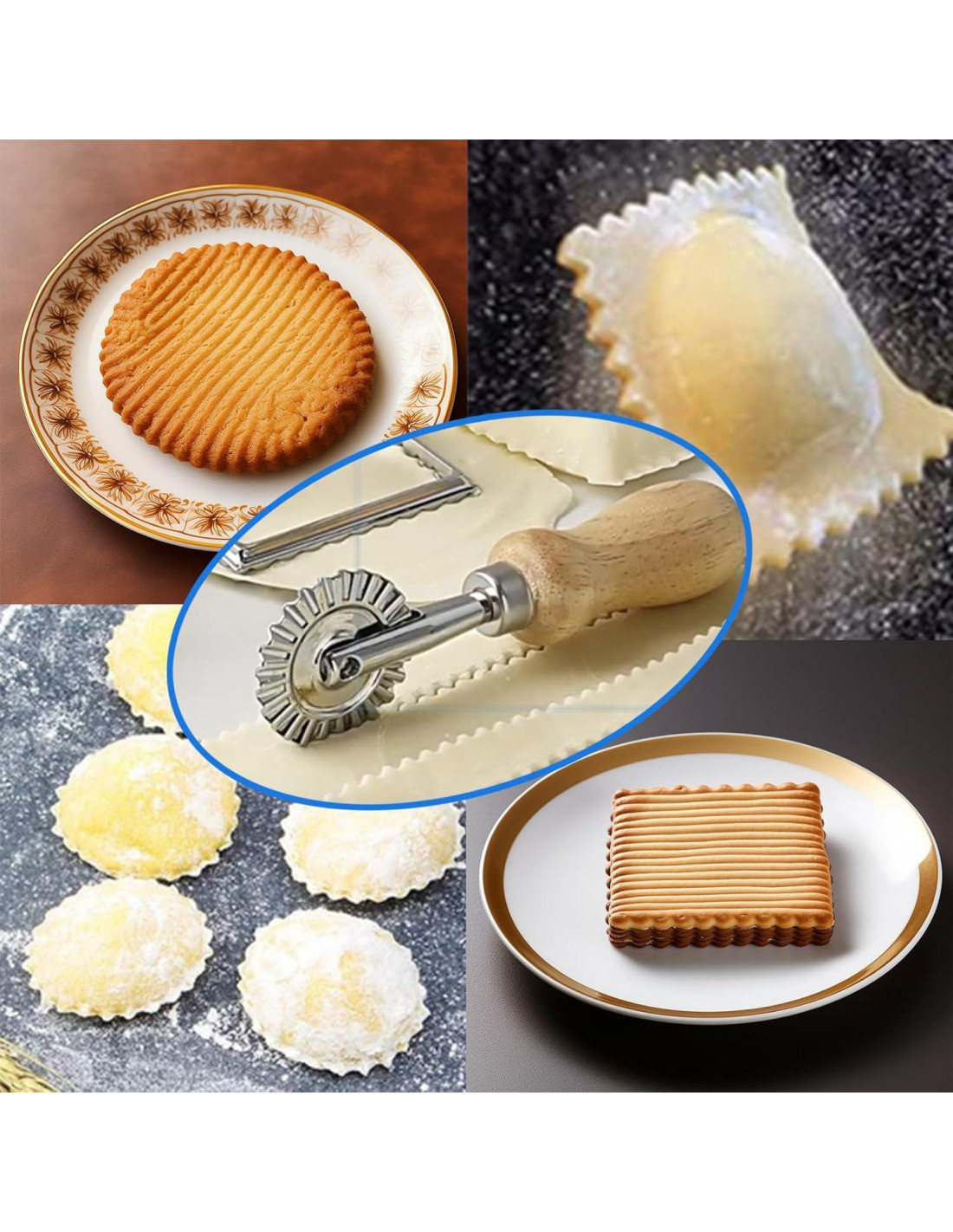 - [Diseño Único] Nuestra rueda cortadora de pasta tiene una apariencia hermosa y elegante, muy práctica en la cocina. La rueda crimpadora de ravioles se adapta a la forma de tu mano y hace galletas sin esfuerzo, y los bordes acanalados se pueden presionar fácilmente para crear patrones claros y una variedad de hermosas formas de pasta.