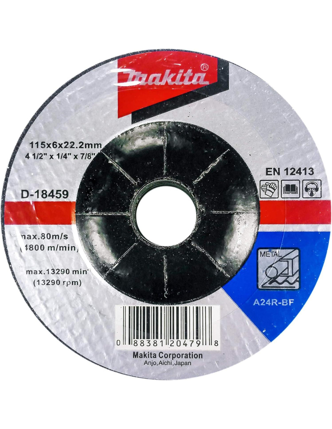 Optimiza tu trabajo de esmerilado de metal con estas 10 Ruedas de Esmeril Premium de 4-1/2" de Makita para Metal, a un ángulo de 15-30 grados, respecto a la superficie de trabajo, aplicando la cantidad adecuada de presión para permitir que la rueda de esmeril haga el trabajo. Para obtener los mejores resultados, considera no presionar demasiado la rueda, lo que puede causar que el esmeril se detenga o retroceda o dar una acción de esmerilado menos eficiente, mientras que también aumenta las posibilidades de deslizamiento o pérdida de control de la herramienta, lo que resulta en lesiones o daños. Aplicar presión ligera a moderada y movimiento constante proporcionará el esmerilado más eficiente y minimizará la acumulación de calor. Considera usar presión ligera y un movimiento constante durante el esmerilado para la tasa de esmerilado más rápida y una vida útil prolongada de la rueda. La presión excesiva durante el esmerilado causa un aumento de fricción y acumulación de calor, lo que puede causar una mayor decoloración por calor de la pieza de trabajo y reducir la vida útil de la rueda. Para aplicaciones exigentes, los esmeriles de ángulo de mayor amperaje y/o par de torsión proporcionan esmerilados más fáciles, duraderos y eficientes.