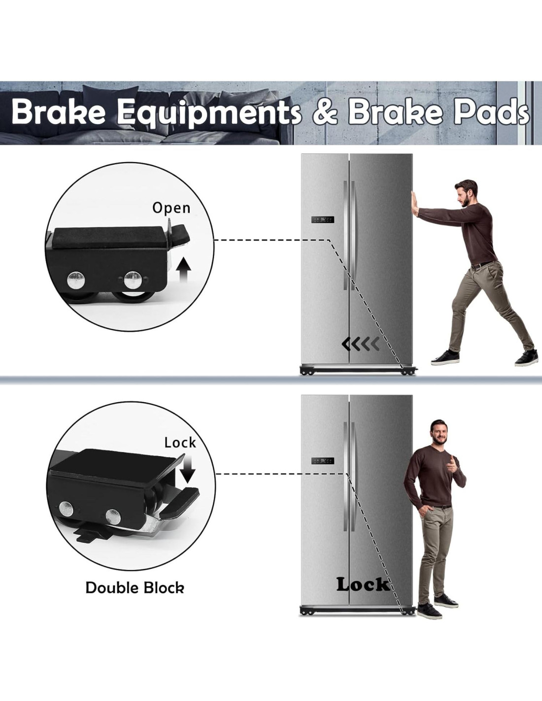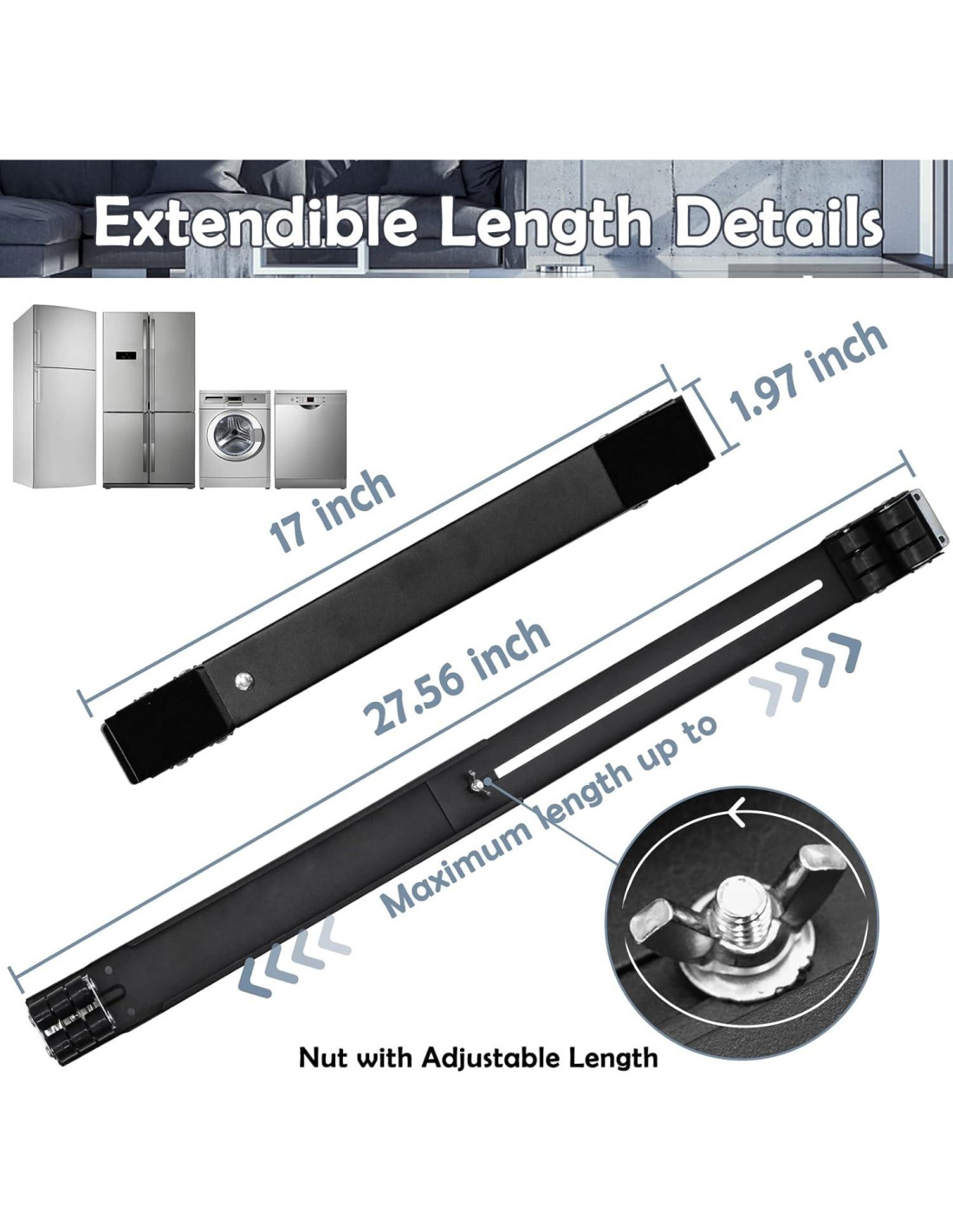 - MANUAL DE INSTRUCCIONES: 1) Extiende el rodillo para electrodomésticos a la longitud adecuada, luego aprieta los tornillos en la parte posterior. 2) Coloca los rodillos para electrodomésticos debajo del mueble. Repite los pasos. 3) Mueve tu mueble al lugar apropiado y finalmente presiona el interruptor de freno (lo más importante).
