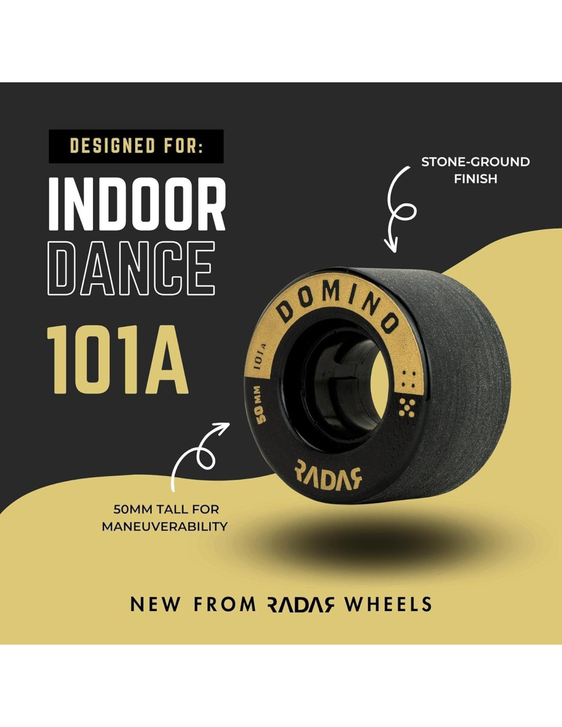 - DURADERO PARA MILES DE USO - Las ruedas de patinaje Radar Domino están hechas de un urethane duradero diseñado para rendimiento en interiores y te brindarán un agarre duradero en cualquier pista. Disponible en durezas 98A y 101A.