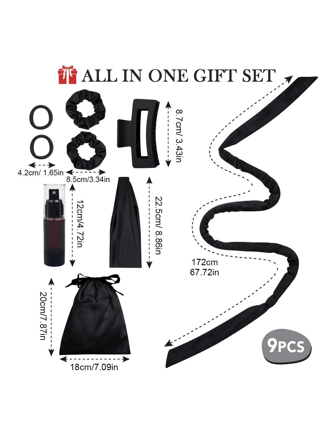 - JUEGO DE REGALO COMPLETO: Nuestro conjunto de rizado todo en uno incluye 9 artículos esenciales: una diadema de rizado de 70 pulgadas (178 cm), diadema elástica, clip para el cabello, lazos de terciopelo y elásticos, bolsa de almacenamiento y botella de spray. Empaquetado en una caja exquisita, es el regalo perfecto para cualquier ocasión, como cumpleaños, Navidad o el Día de la Madre.