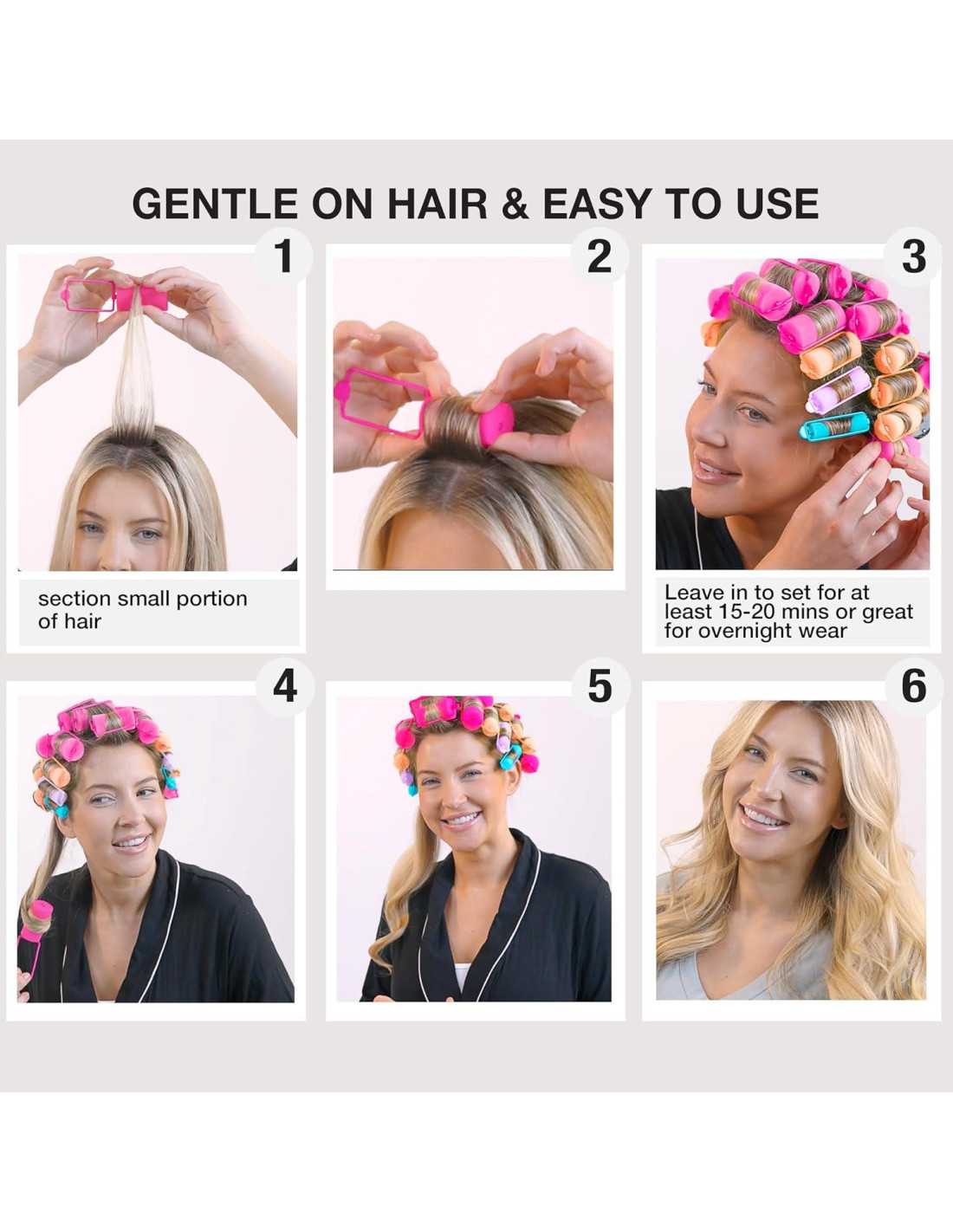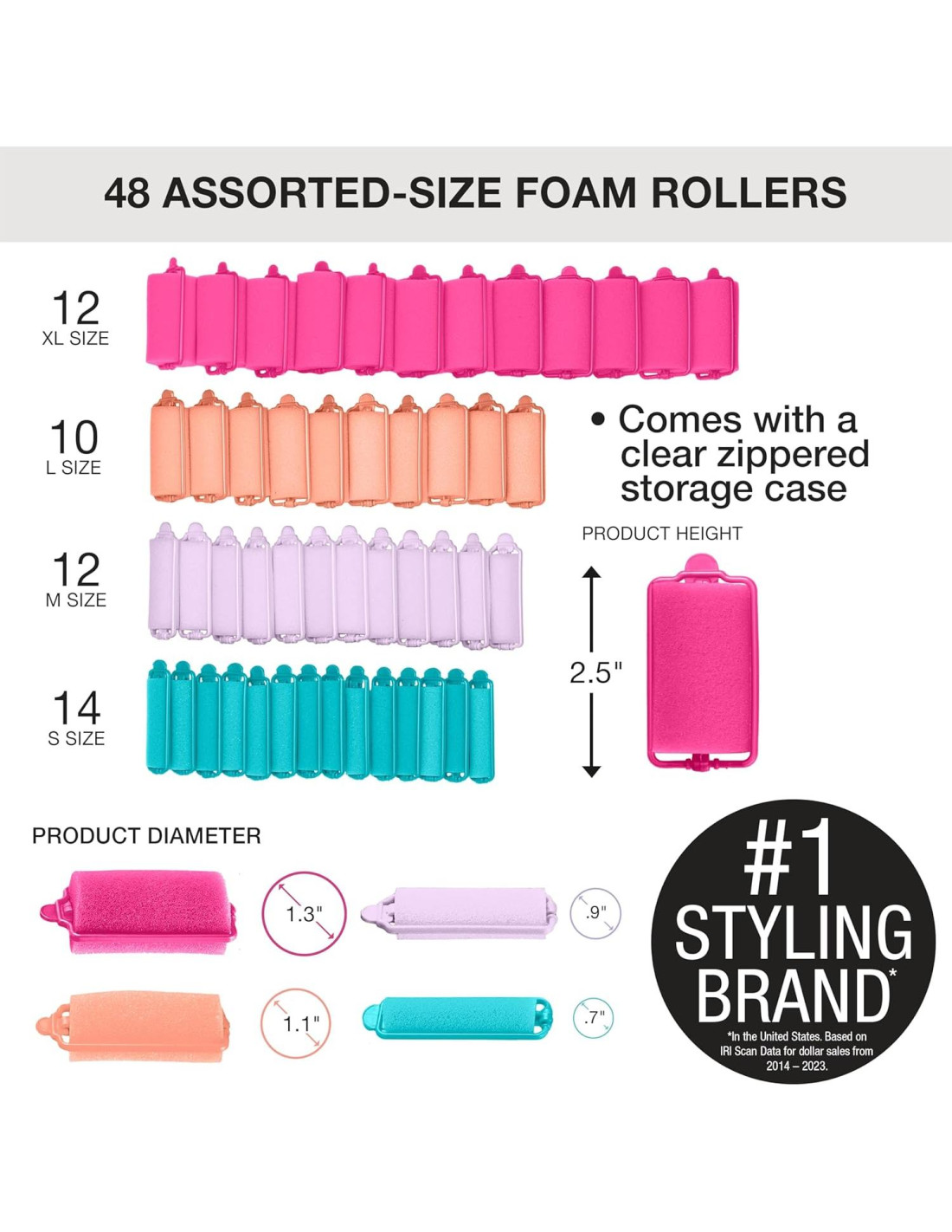 Conair tiene todo lo que necesitas para un cabello hermoso. Estos suaves rulos de espuma son gentiles con tu cabello y cómodos para dormir. Coloca una mezcla de los 48 rulos en tu cabello para crear rizos hermosos, ajustados y definidos (usando los rulos más pequeños) y cuerpo, volumen y ondas (usando los rulos más grandes). Simplemente envuelve pequeñas secciones de cabello alrededor de los rulos de espuma, enrolla hacia la cabeza, coloca los clips de plástico en su lugar y despierta con rizos hermosos y rebotantes.