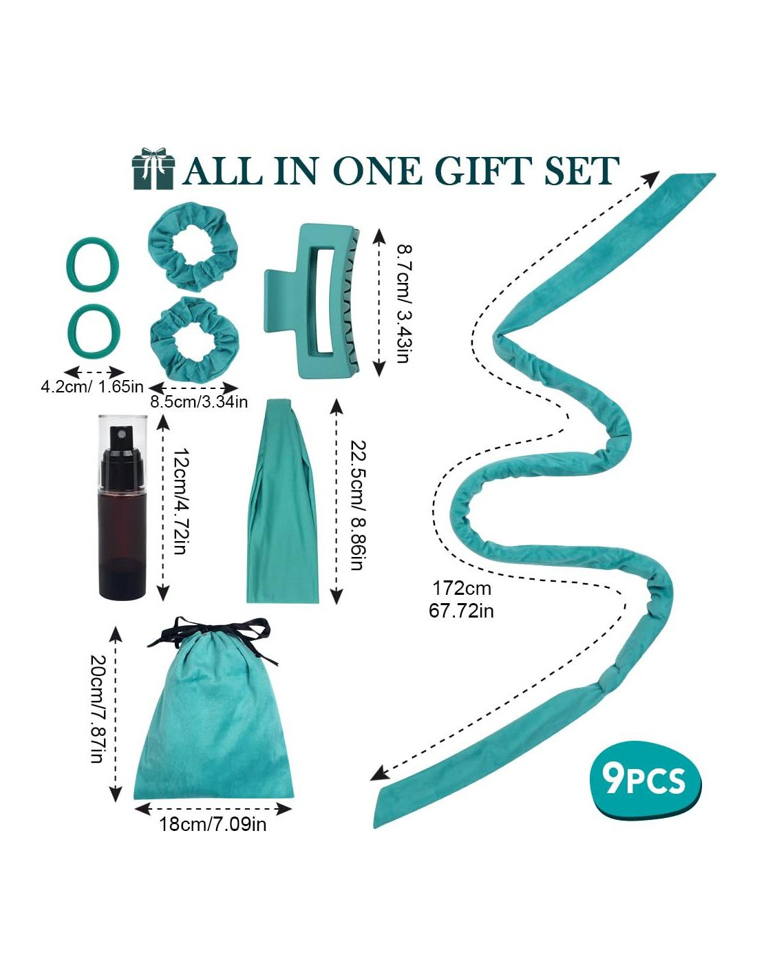 - JUEGO DE REGALO COMPLETO: Nuestro set de rizado todo en uno incluye 9 artículos esenciales: una diadema para rizar de 180 cm (70 pulgadas), diadema elástica, clip para el cabello, lazos de terciopelo y elásticos, bolsa de almacenamiento y botella de spray. Empaquetado en una caja exquisita, es el regalo perfecto para cualquier ocasión, como cumpleaños, Navidad o el Día de la Madre.