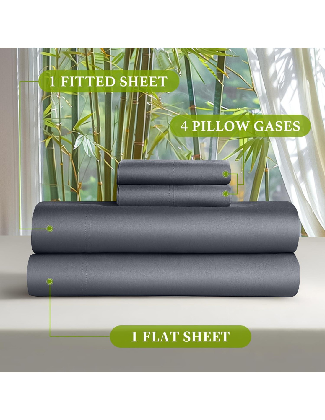 - [FRESCO, TRANSPIRABLE Y ADICTIVAMENTE CÓMODO] Estas sábanas son naturalmente frescas - 3 grados más frescas que las sábanas de algodón y lino - incluso un grado hace una gran diferencia cuando duermes. Las sábanas hechas de bambú son súper transpirables, regulan la temperatura, absorben la humedad mejor que incluso los tejidos de poliéster de alto rendimiento, y te mantienen más seco y cómodo.
