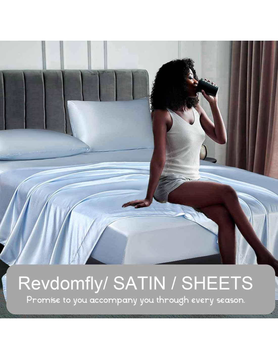 - No te Dejes Engañar por su Hermosa Apariencia ¿Crees que las cosas más bellas son más frágiles y necesitan más cuidado? Revdomfly ha pasado exitosamente decenas de miles de pruebas de lavado a máquina y pruebas de fricción con objetos afilados; Verdaderamente excelentes juegos de sábanas de satén soportan la prueba; Puedes moverte en la cama sin preocuparte de que el juego de sábanas se raye; Incluso puedes descansar en la cama con tu mascota.