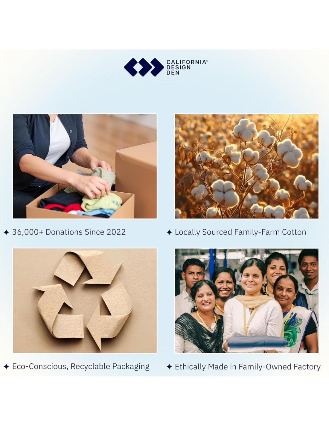 - NUESTRO COMPROMISO: Priorizamos la comodidad, la comunidad y la sostenibilidad. Desde 2022, hemos donado más de 36,000 artículos de cama a organizaciones benéficas en EE. UU. y eliminado el plástico de nuestro empaque. Las sábanas se fabrican en nuestra fábrica familiar en India con cuidado y control de calidad; el conteo de hilos puede variar en un 5% debido a límites de fabricación estándar. Disfruta de lujo asequible y devoluciones sin complicaciones para una mejor noche de sueño.