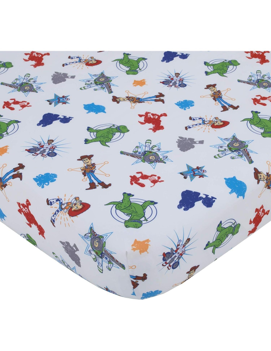 El juego de sábanas para niño pequeño Toy Story 4 - Paquete de 2 incluye una sábana ajustada y una funda de almohada. Elástico por todo alrededor asegura un ajuste ceñido en tu colchón. La funda de almohada de 20 x 30 pulgadas (50,8 x 76,2 cm) con Buzz Lightyear y Woody es perfecta para divertidas aventuras.