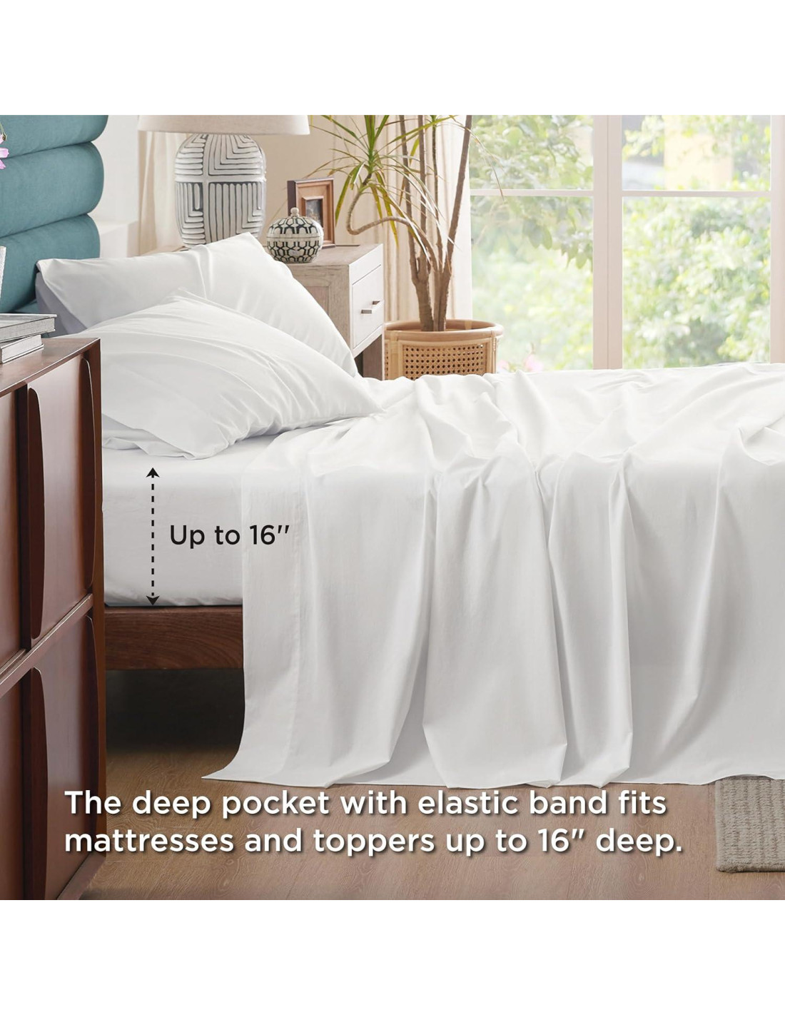 - Arrugas Naturales: Este juego de sábanas de algodón prelavado presenta un aspecto naturalmente arrugado que se asemeja al lino y se siente como algodón. Agregando un ambiente relajado a tu habitación que requiere poco esfuerzo para mantener