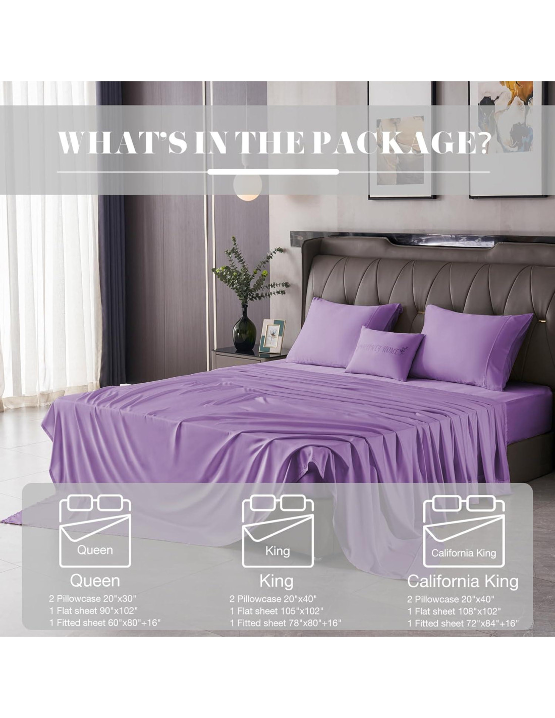 - Sábanas de Viscosa de Bambú - Hechas de fibras 100% orgánicas con un conteo de hilos de 300, estas sábanas de lujo ofrecen una sensación suave como la seda que te envuelve en comodidad. Más duraderas que el algodón egipcio tradicional, resisten desgarros y deshilachados, asegurando suavidad duradera.