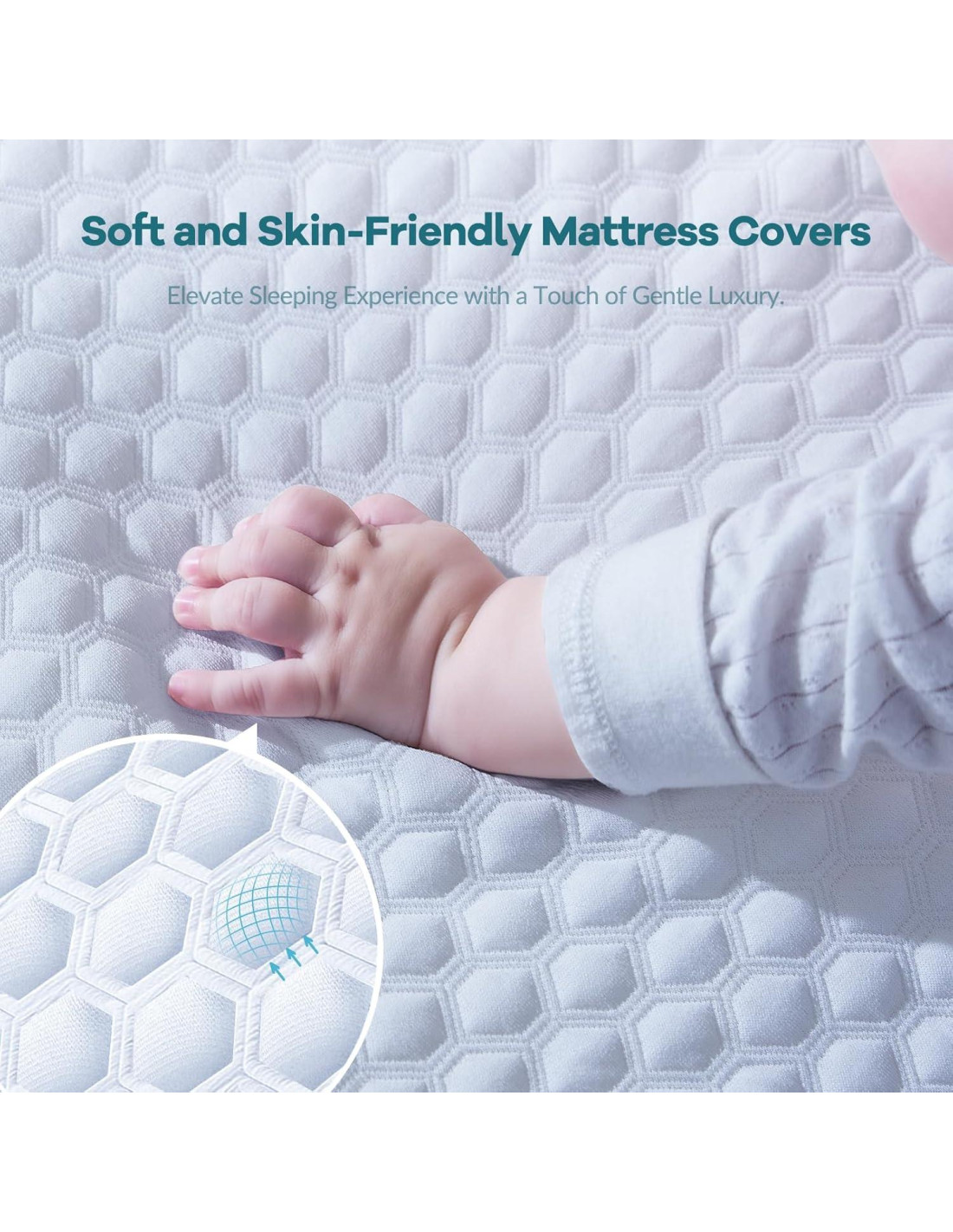 - Conveniencia de fácil cuidado: la funda para colchón de cuna es duradera y de larga duración, asegurando una limpieza sin preocupaciones. Soporta el lavado a máquina, haciendo que la limpieza sea sin esfuerzo y conveniente, permitiéndote proporcionar un ambiente de sueño limpio y cómodo para tu bebé en cualquier momento