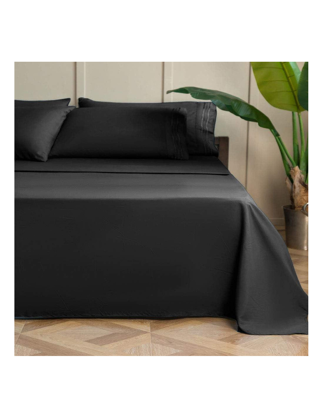 - [Tamaño Doble] Juego de Sábanas de Lujo de 6 piezas - 1 sábana plana 81"x96" (206x244 cm), 1 sábana ajustable 54"x75"x16" (137x191x41 cm), 4 fundas de almohada 20"x30" (51x76 cm). Bolsillos profundos que se ajustan a colchones de hasta 16" (41 cm) de profundidad con elástico alrededor de la sábana ajustable. ¡Estas sábanas se ajustan y se adaptan mejor que cualquier otro juego de sábanas! El juego de sábanas está diseñado para ajustarse a casi todos los colchones con una profundidad que no exceda 16" (41 cm). Con un estiramiento adicional y un elástico duradero, la sábana ajustable está diseñada para mantenerse ajustada y adaptada a tu colchón.