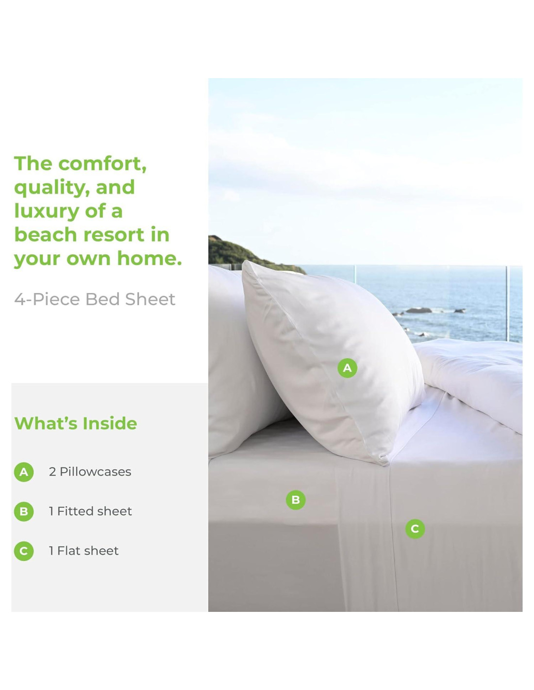 - Certificadas por Calidad: Hechas en Green y certificadas por OEKO-TEX, estas sábanas cumplen con altos estándares de seguridad y prácticas de producción, asegurando calidad en la que puedes confiar. Puedes estar seguro de que estas sábanas están hechas con cuidado y responsabilidad.