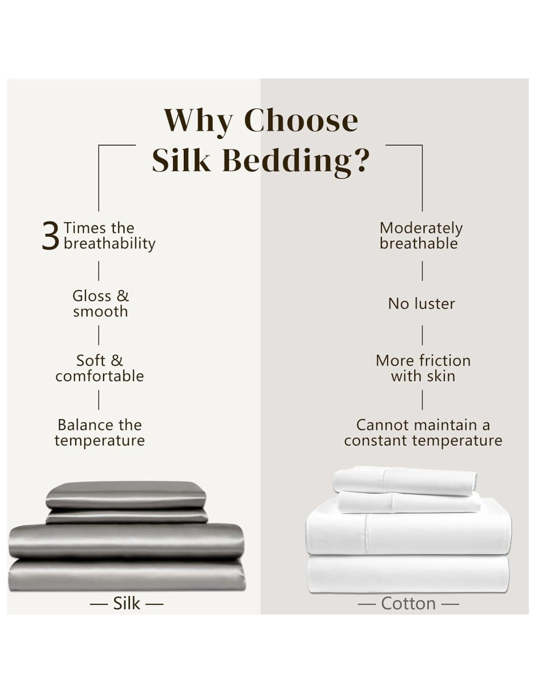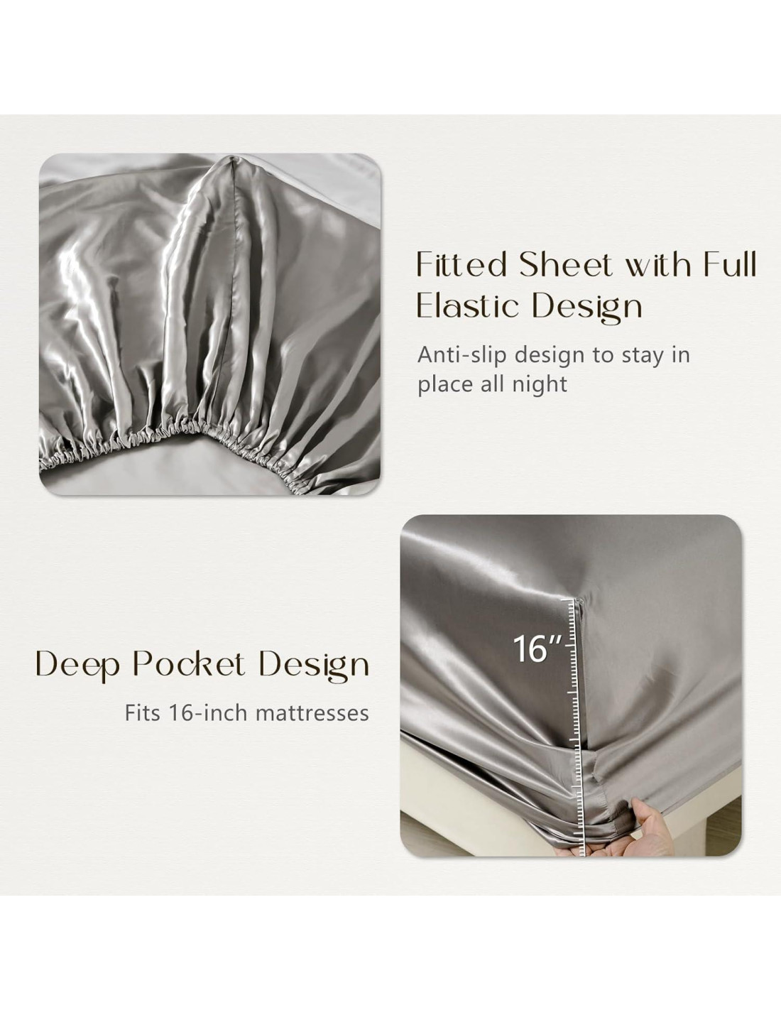 - Material: 100% Seda de Morera 19 Momme por ambos lados, 600 hilos, 19 Momme es el material de seda cruda más suave y brillante que hace que las sábanas sean súper suaves y cómodas.