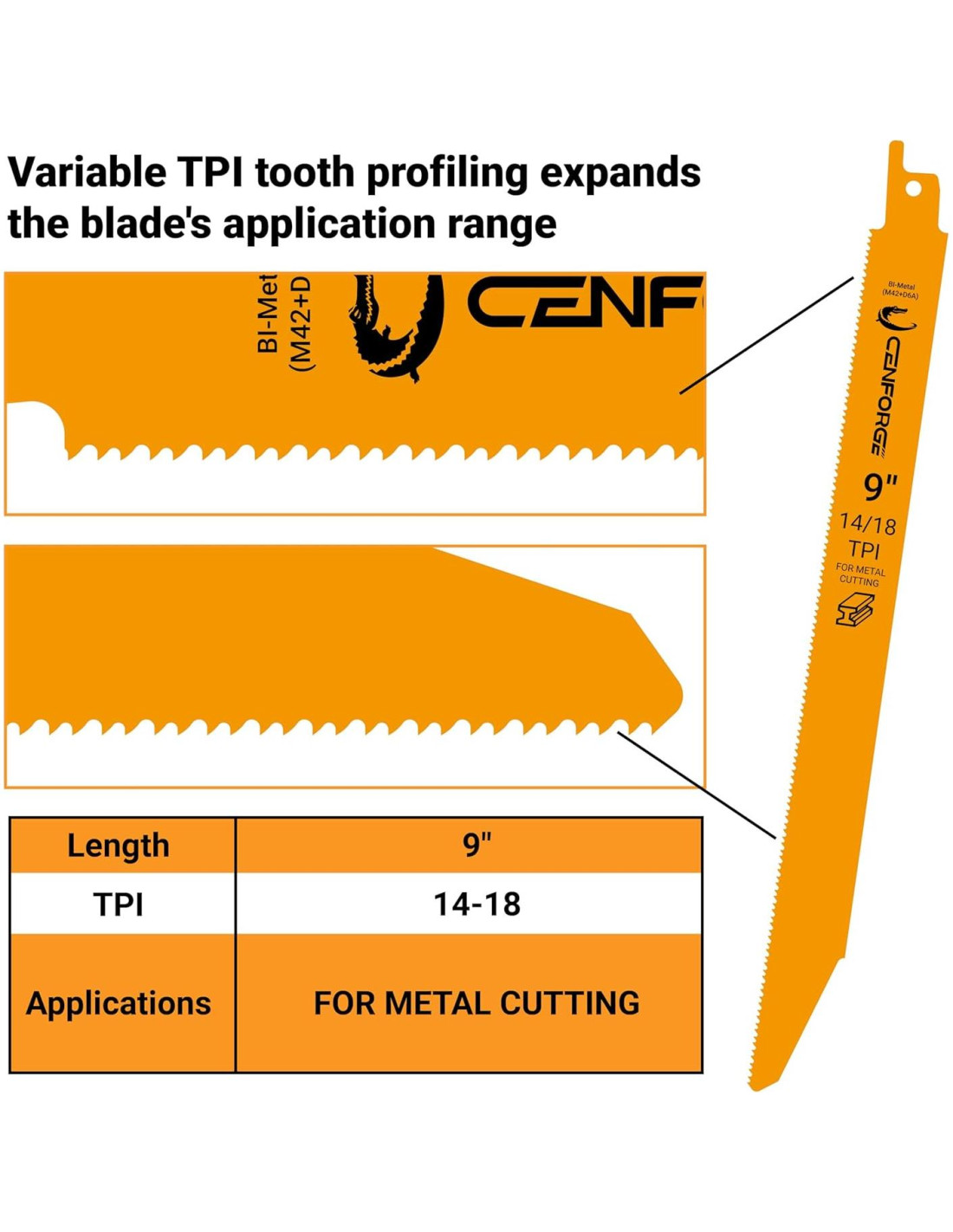 - [Aplicaciones]: Las cuchillas de 14-18 TPI son principalmente adecuadas para uso industrial, comúnmente empleadas en corte de metal, tareas de construcción general, corte en talleres, desmantelamiento de automóviles, reciclaje de metal y más.