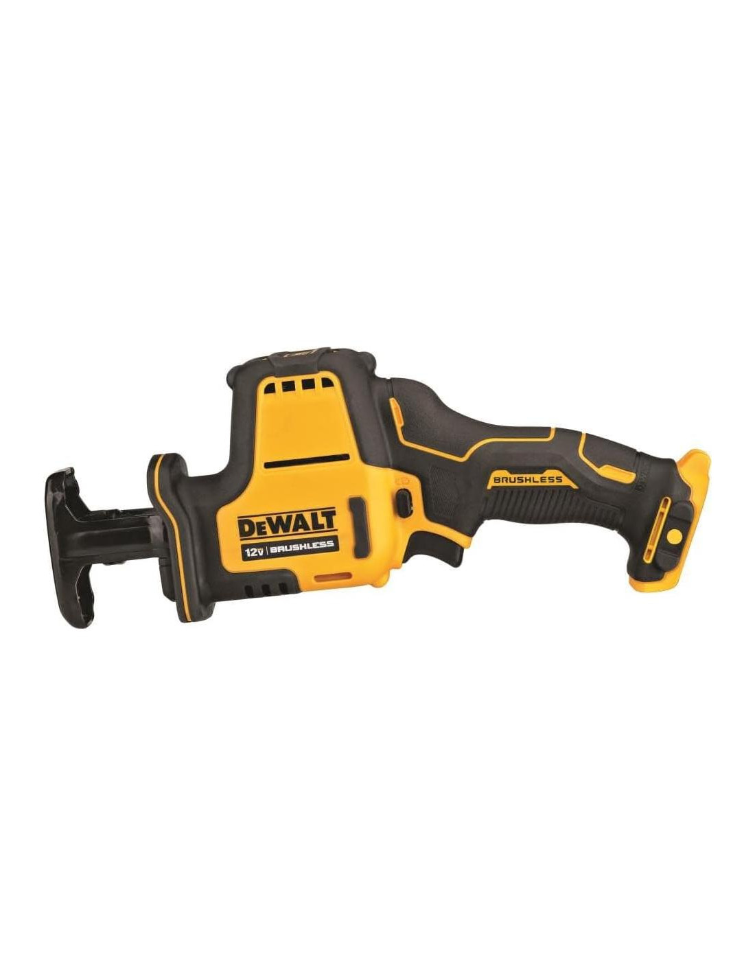 Esta sierra recíproca inalámbrica de 12V MAX* es compacta y está llena de rendimiento. Con solo 3.04 lbs (1,38 kg) y 12.12 pulgadas (30,73 cm) de frente a atrás, la sierra recíproca está optimizada para su uso con una mano en una amplia gama de aplicaciones de corte. El motor sin escobillas ofrece hasta 2,800 spm combinado con una longitud de carrera de 5/8 pulgadas (1,59 cm) para un corte rápido y eficiente. La sierra recíproca DEWALT está equipada con un LED para mayor visibilidad junto con un gatillo de velocidad variable para un control adicional. Batería y cargador se venden por separado.