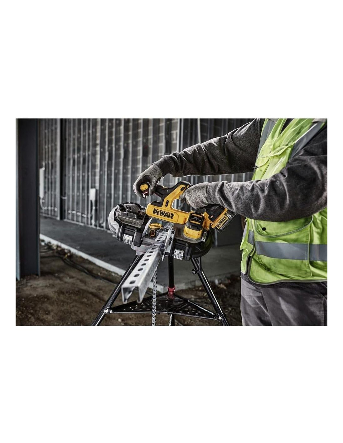 Enfrenta necesidades de corte difíciles con la Sierra de Banda de Doble Gatillo Sin Cable 20V MAX* XR con Motor Sin Escobillas. Cuenta con un gatillo secundario en el mango auxiliar para un mayor control en el agarre frontal que ayuda a asegurar un funcionamiento adecuado y un motor sin escobillas que entrega 535 MWO a 570 SFPM. Esta sierra de banda de doble gatillo está diseñada para ofrecer un rendimiento rápido y eficiente; realiza hasta 120 cortes por carga a través de un soporte de 12 gauge. Esta sierra de banda corta un soporte de 12 gauge tan rápido como en 5.1 segundos. Termina el trabajo de manera efectiva con esta herramienta XR equipada con una gran capacidad de corte de 3-3/8 pulgadas adecuada para una amplia gama de aplicaciones de sierra de banda. (Batería y cargador se venden por separado.)