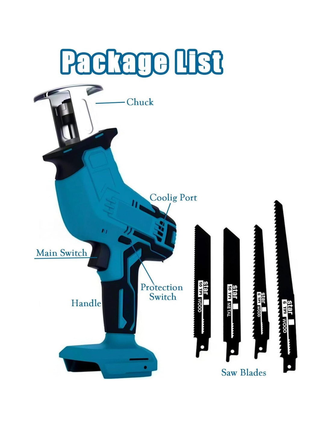 - IMPORTANTE: Baterías NO incluidas-solo herramienta. Este conjunto de sierra recíproca incluye: 1x sierra recíproca, 4x hojas, 1x caja de almacenamiento. Perfecto para trabajos de carpintería DIY, corte de madera/tuberías de PVC/metal, desbroce, poda y eliminación de escombros.