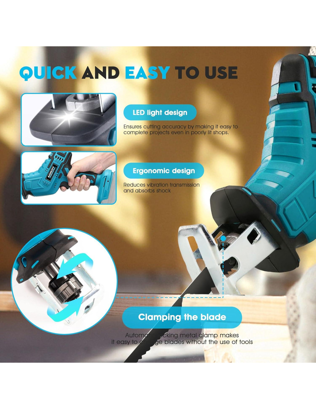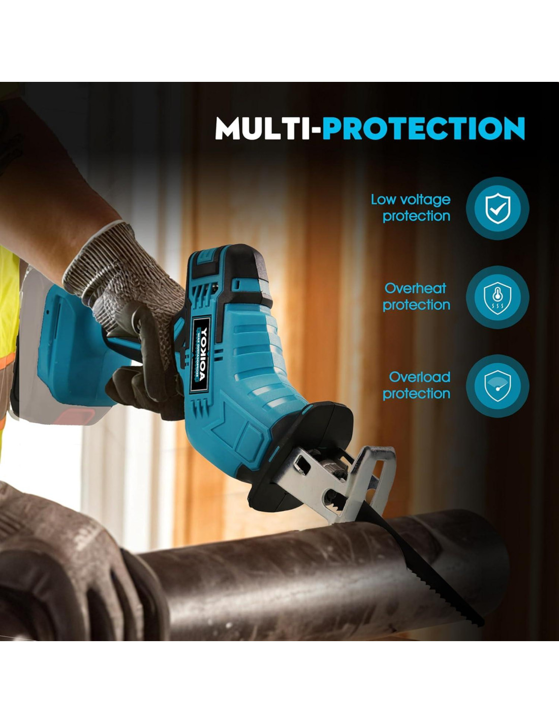 - [Características de Seguridad para Tranquilidad] Con protección incorporada contra sobrecalentamiento, sobrecarga y bajo voltaje, esta sierra recíproca eléctrica está diseñada para mantener tanto la herramienta como la batería seguras durante el uso prolongado. Ya sea que estés cortando en tu taller o en un sitio de trabajo, el interruptor de bloqueo de seguridad asegura que la sierra no se inicie accidentalmente, proporcionando tranquilidad con cada corte.