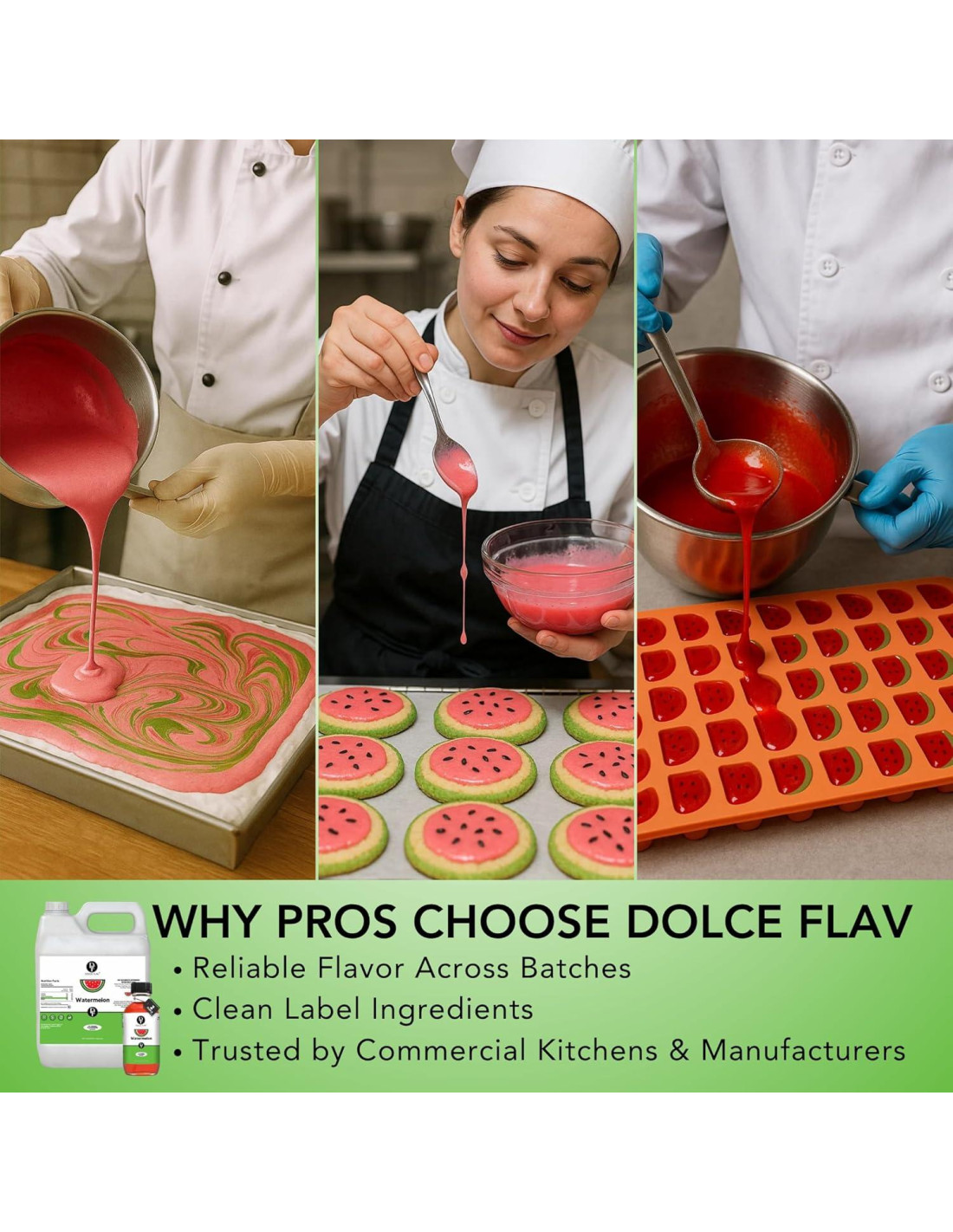 - Dominando las Golosinas Infusionadas con Sandía: Con nuestro concentrado puro de sandía, puedes lograr un sabor completo de sandía en cada caramelo y postre, desde gomitas de sandía ácidas hasta glaseados irresistibles.