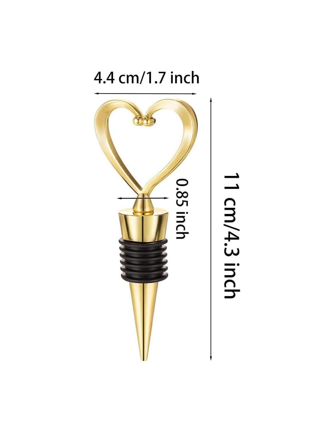 - Tamaño - 10.9 cm L x 4.3 cm W, Estos tapones de vino de amor se adaptan a la mayoría de los tamaños de botellas.