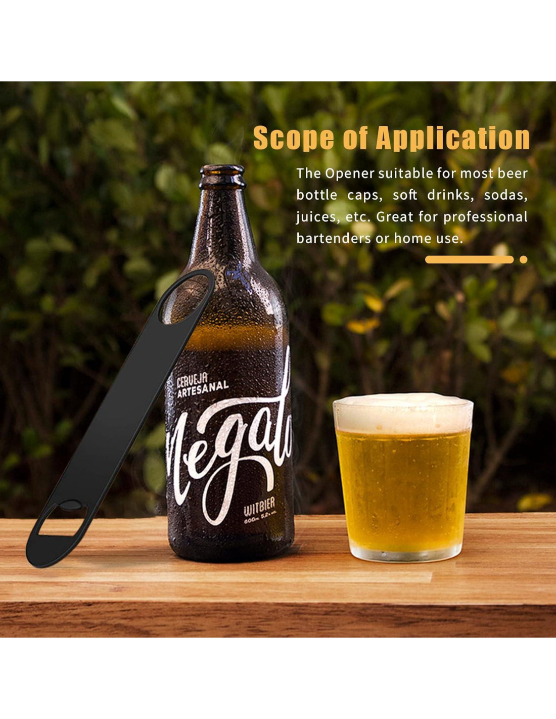 Descripción del producto Color: Negro Estos abrebotellas planos de mano están hechos de acero inoxidable, lo que los hace sostenibles. Cada extremo de apertura tiene una forma diferente para acomodar varios tipos de botellas. Viene en una longitud de 7 pulgadas (17,78 cm). El diseño delgado se adapta sin esfuerzo a tu bolsillo, y el anillo giratorio te permite sacar esto más rápido. Ideal para bartenders profesionales también.