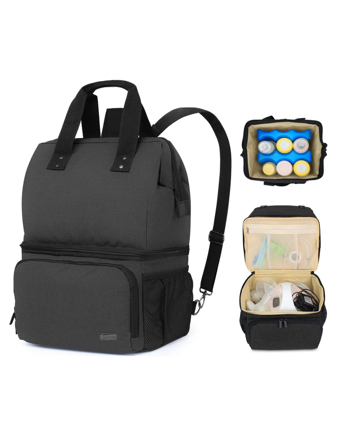 - CAPACIDAD: La sección superior es para almacenar la bolsa de enfriamiento y bocadillos (también puedes colocar las botellas de leche materna y el paquete de hielo directamente en este compartimento). Sección inferior para almacenar el extractor de leche y sus accesorios. (como Spectra S1 y Spectra S2)