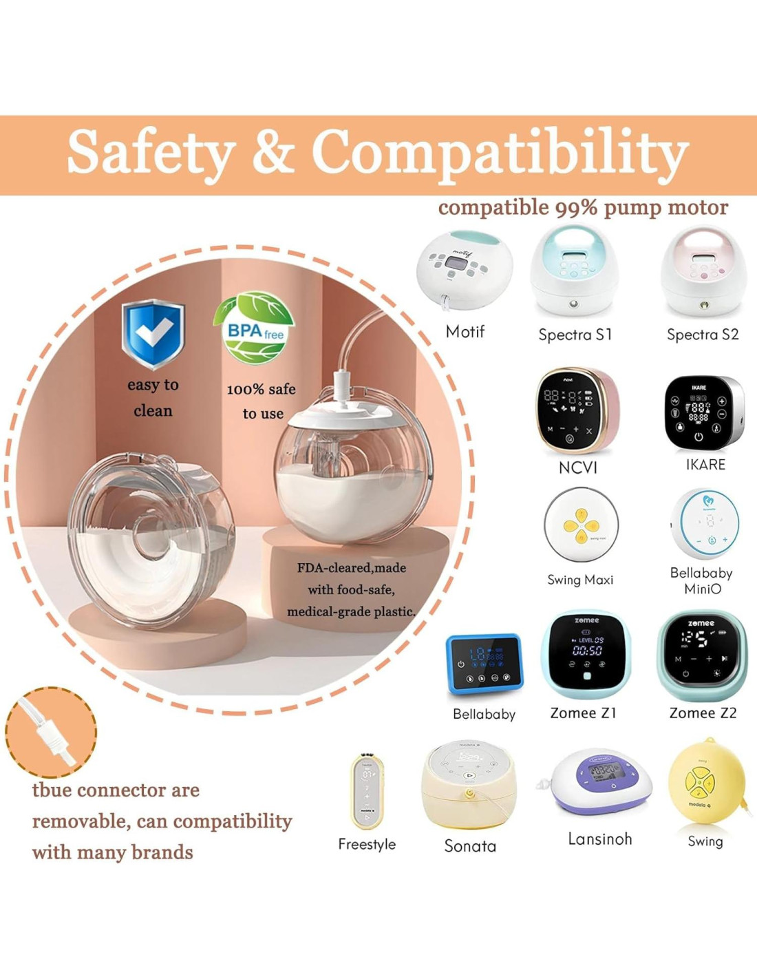 - [Seguridad y Compatibilidad] La taza recolectora de leche manos libres está hecha de plástico de grado alimenticio y es libre de BPA, lo que la hace 100% segura de usar. La taza de recolección de leche portátil es compatible con la mayoría de los extractores de leche aprobados que utilizan tubo. Puedes seguir los 4 videos de referencia adjuntos para encontrar el tipo de orificio de inserción de tu motor de extractor.