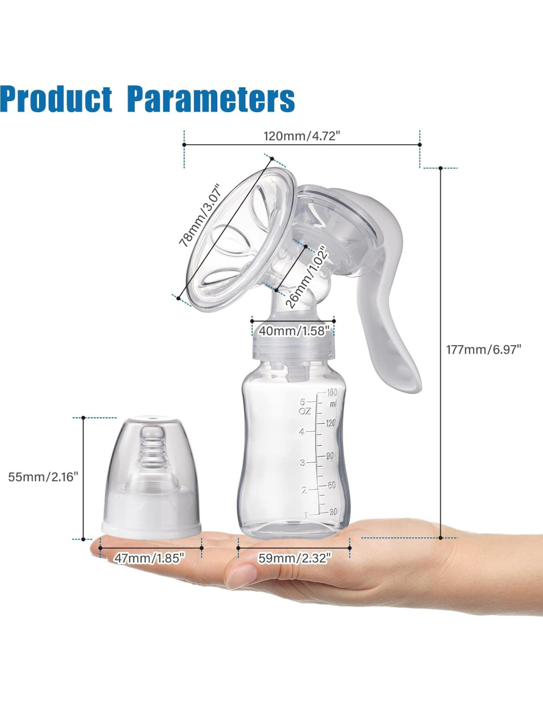 - Fácil de Limpiar - Limpia la bomba de leche y la tapa con agua, y se recomienda poner la bomba en agua hirviendo durante 3-5 minutos. El paquete incluye: cada bomba de pecho manual portátil viene con una pequeña botella para bebés de 5 oz que puede almacenar tu leche materna para uso inmediato o guardarse de forma segura en el refrigerador. Pezón con labio X 1, labio de polvo de bomba X 1.