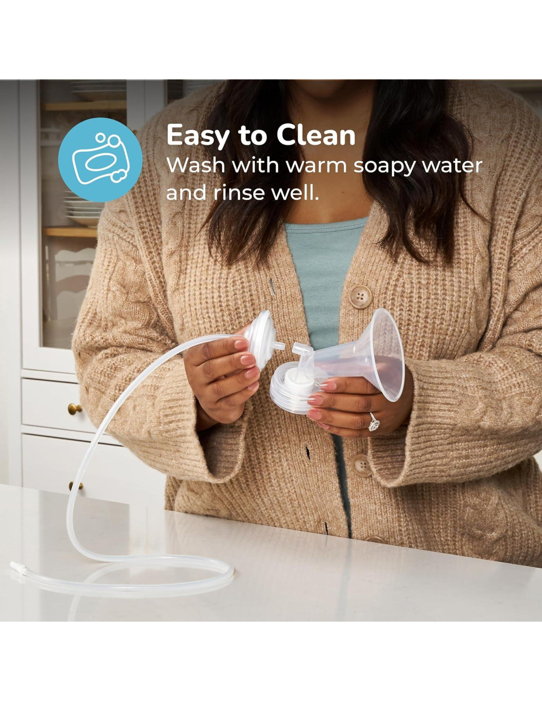 - Fácil limpieza: Lave las partes del extractor Spectra después de cada uso con agua tibia y jabón y enjuague bien, no lave el tubo