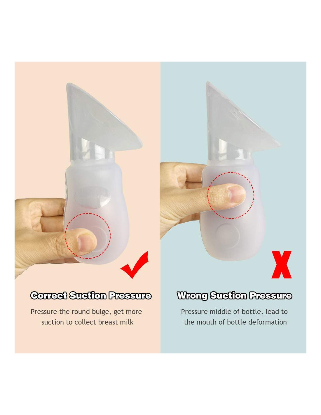 ¡Cuida tu mejor vida! Referente a los más altos estándares de calidad y artesanía, controlamos estrictamente cada proceso de producción, asegurando proporcionar productos satisfactorios para cada cliente. Nuestro objetivo es ofrecer productos de calidad así como servicios para el cliente, tu satisfacción es el mayor apoyo para nosotros. Nuestros Extractores de Leche Manuales están hechos de silicona de grado alimenticio. LIBRE DE BPA. La silicona suave es amigable con la piel y cómoda para tus senos. Muy suave, flexible y duradera para usar. Ecológica. Fácil de limpiar, a prueba de polvo, duradera, alta temperatura. Diseño todo en uno, limpia y desinfecta sin ángulo muerto. La tapa protectora mantiene tu extractor de leche libre de polvo y partículas en el aire. Gran diámetro adecuado para diferentes tamaños de senos. Una vez que el extractor se adhiera correctamente a tu seno, deja que la succión natural trabaje por ti sin manos. 2 protuberancias redondas en el extractor, te ayudan a obtener fácilmente un punto de succión fuerte. Extractor de leche manual de silicona sin ruido que moleste el sueño de tu bebé.